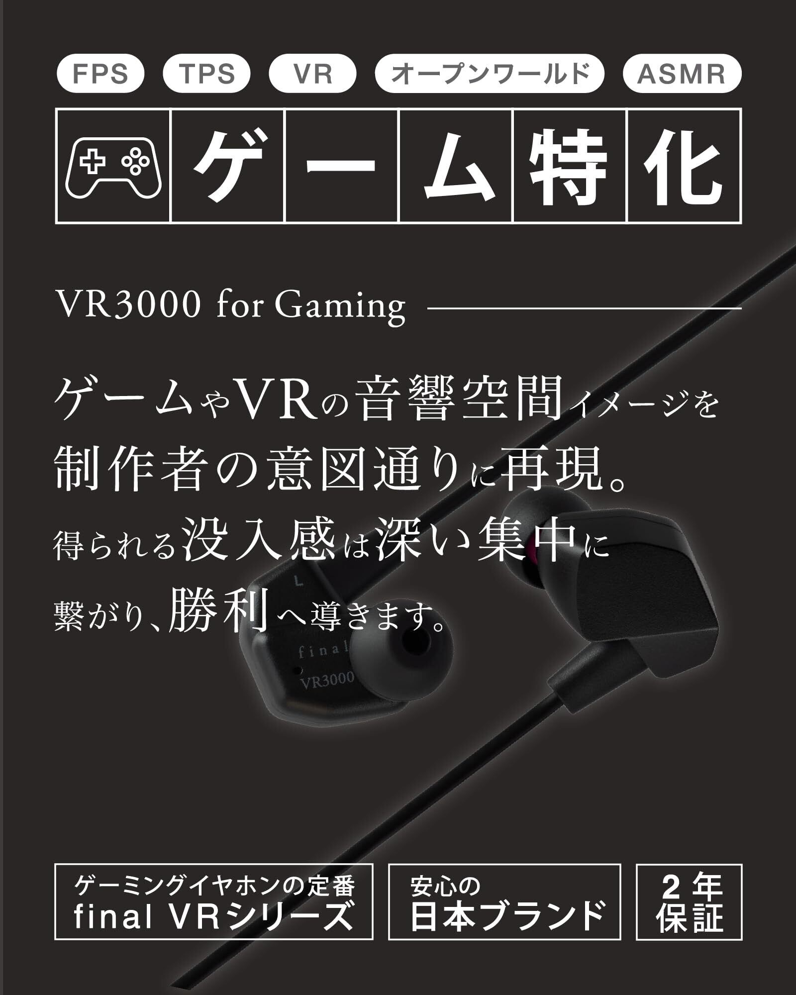 【新春セール】final VR3000 for Gaming Matte Gray・有線ゲーミング イヤホン・バイノーラル3Dサラウンド・マイク付き 【ゲーム/VR/バイノーラル/ASMR / 360オーディオ推奨】 | ニコニコSHOP