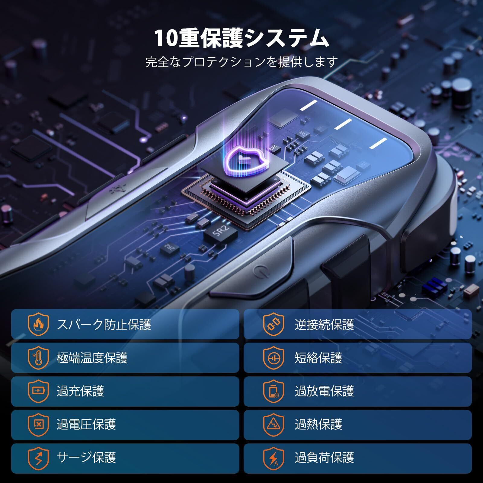 【万全の安全対策】本製品には10種安全保護が内蔵されており、逆接などのミスがしっかりサポートします。PSE、MSDS、FCCなど必要な認証が取得し、電気用品安全法検査も合格済み、安全安心と認められるジャンプスターターです。