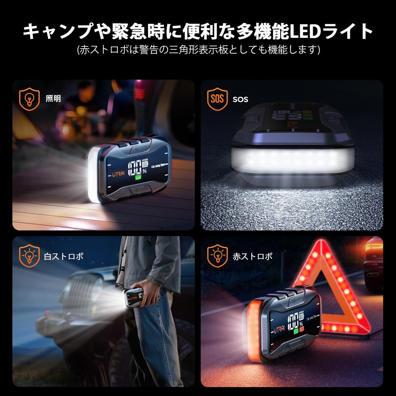 【新着商品】UTRAI ジャンプスターター 27000mAh大容量 6000Aピーク電流 すべてのガソリン車/12Lディーゼル車まで対応 12V車用エンジンスターター モバイルバッテリー PD65W急速充電 600ルーメンLEDライト 車バッテリー上がり対策 PSE認証済 | ニコニコSHOP