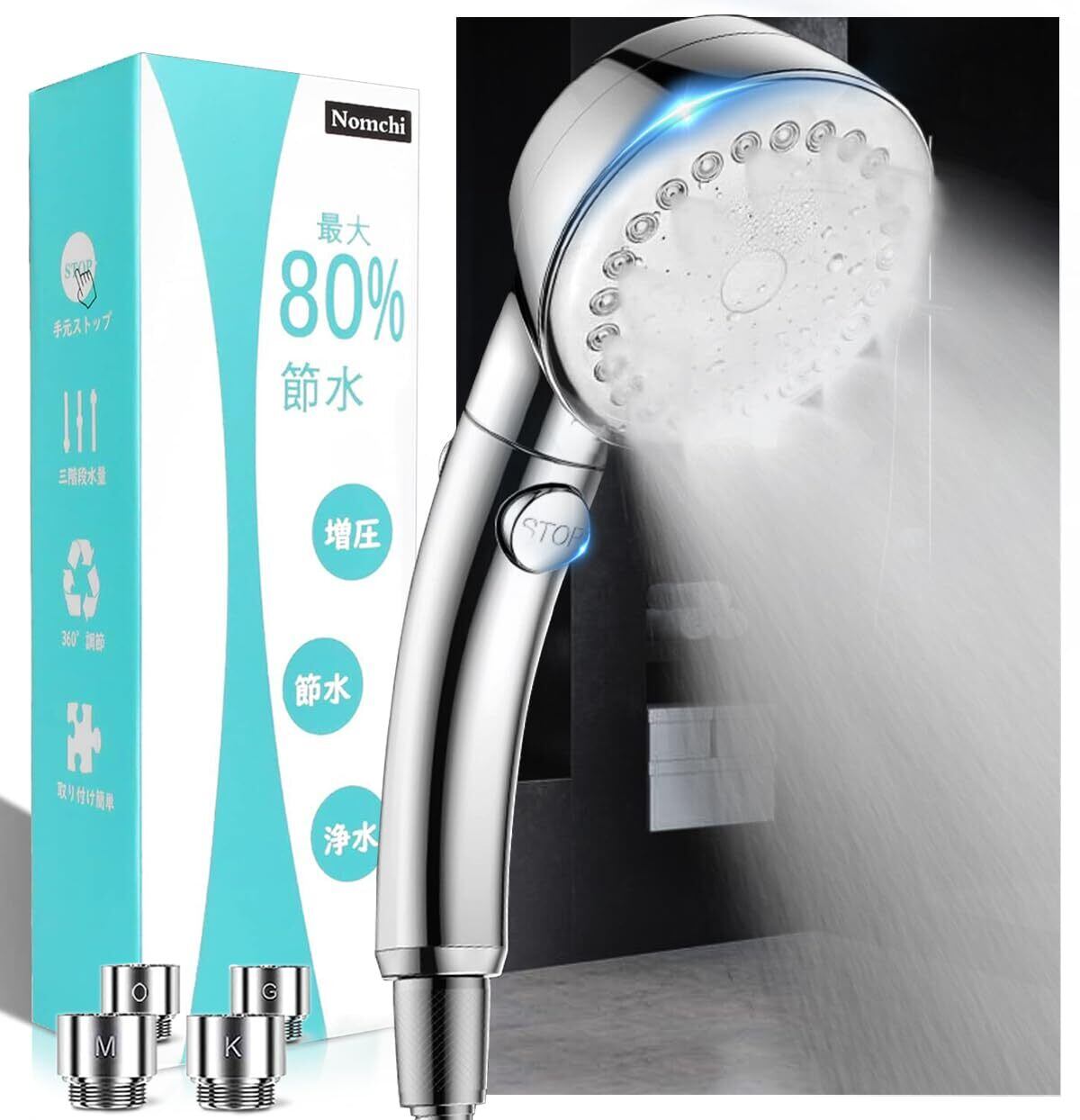 Nomchi シャワーヘッド 節水 ミストマイクロナ ノバブル 増圧 手元止水 ストップ 美肌 水圧強い ミスト 3段階 美髪 高洗浄力 頭皮に肌に優しい お風呂 極細水流 水漏れ防止テープ バスグッズ 取り付け簡単 4種類アダプター付 保温保湿 人気 国際基準G1/2