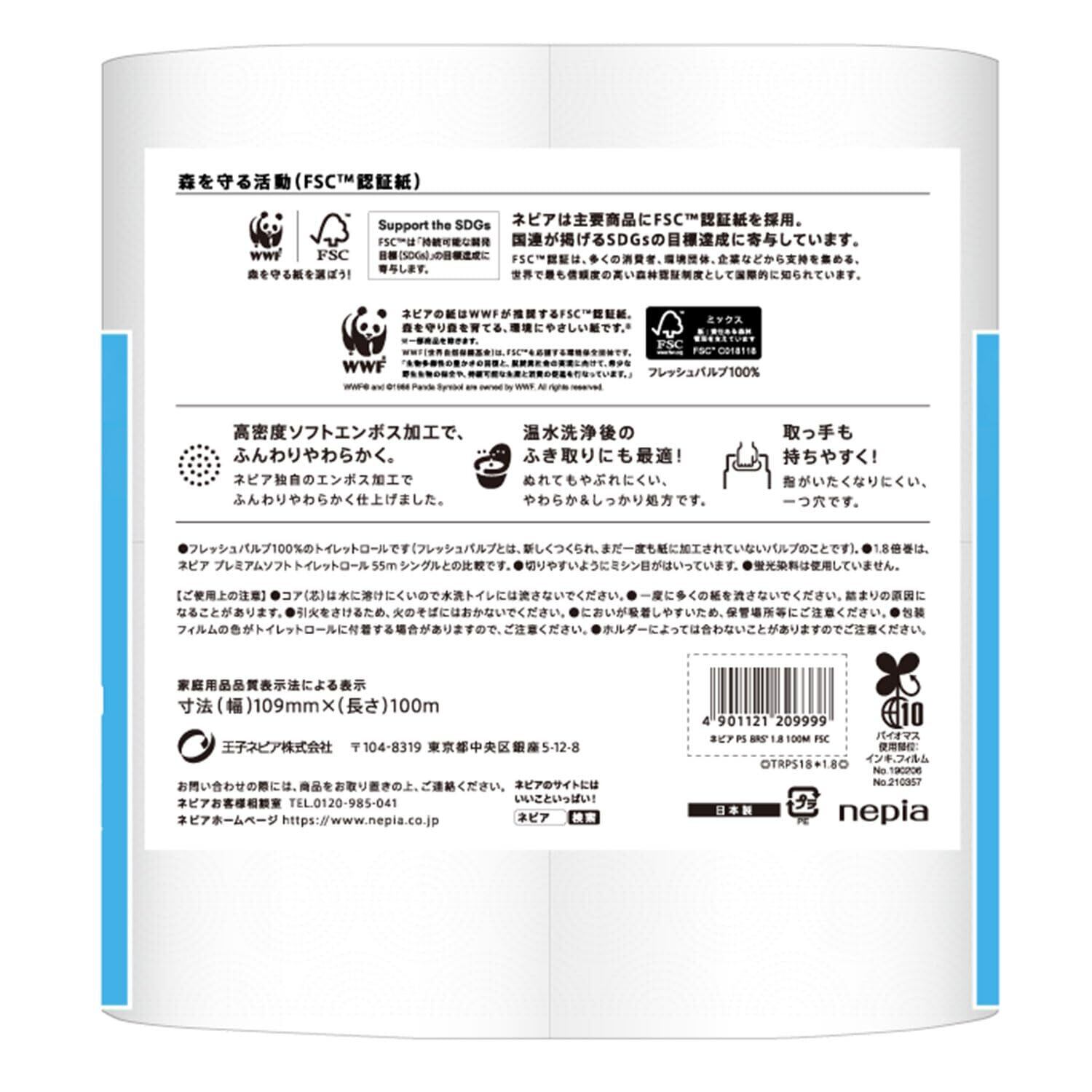 ネピア プレミアムソフト トイレットロール 1.8倍巻100m(シングル) 無香料 64ロール(8ロール × 8パック)【ケース品】