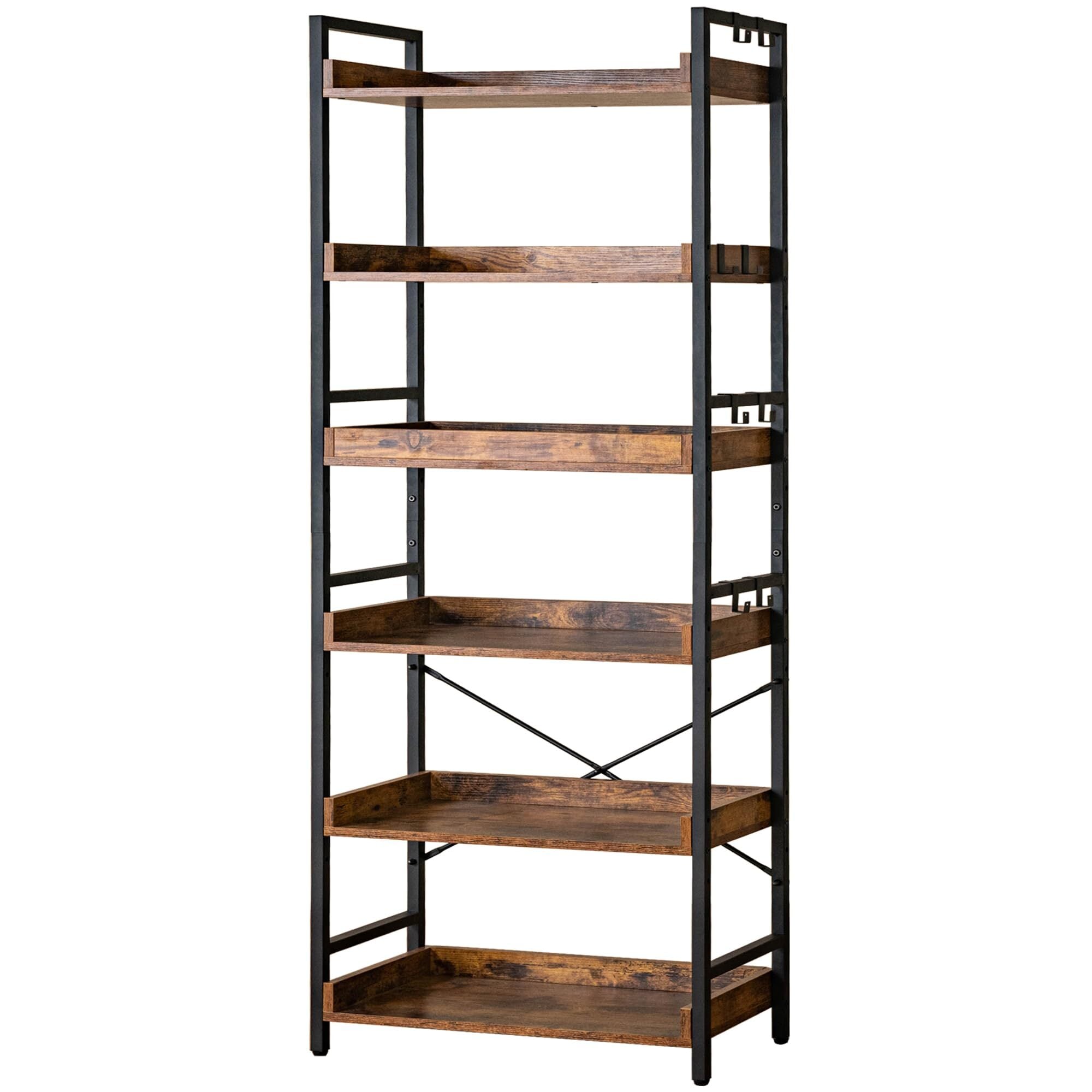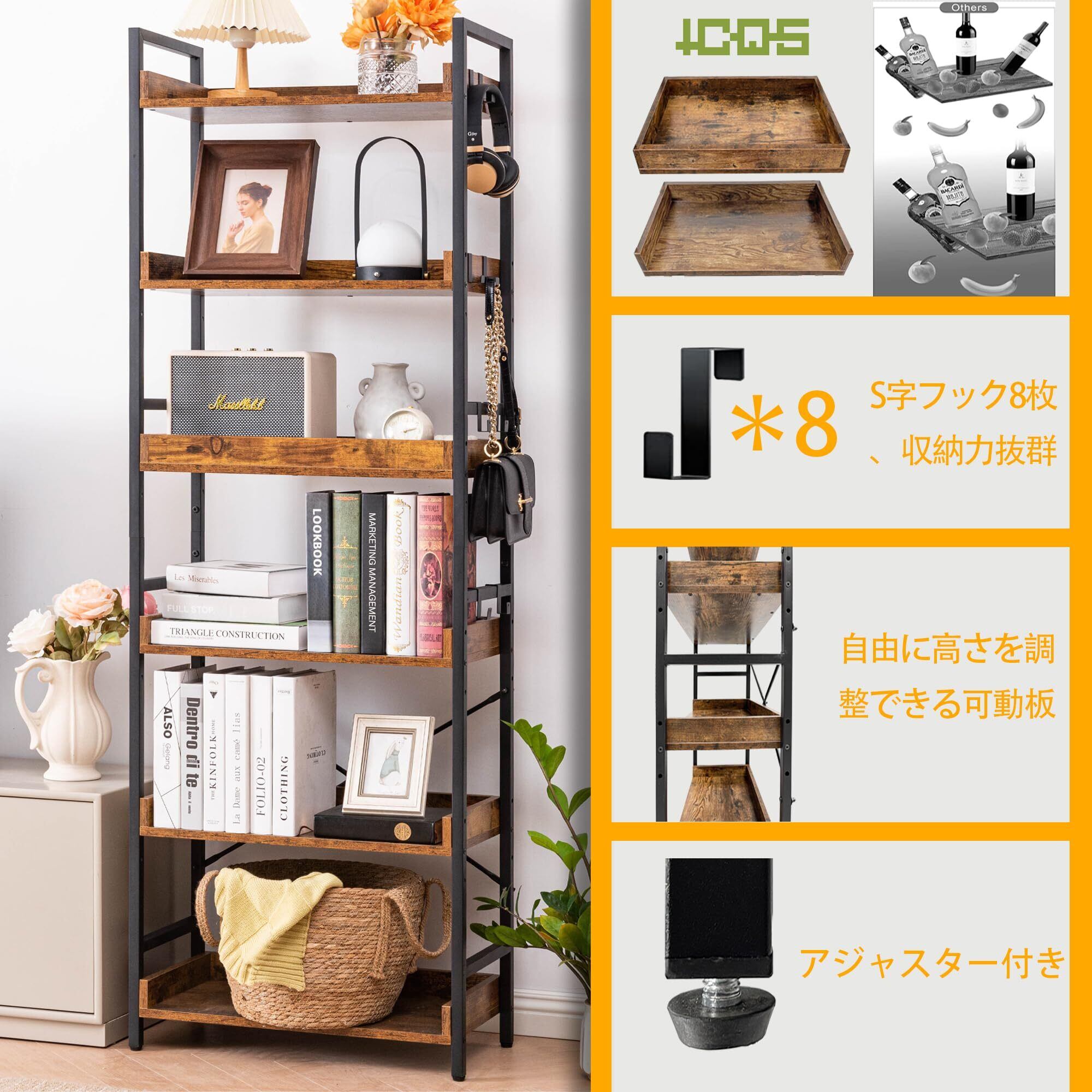 【在庫処分】HCHQHS ラック キッチン 棚 おしゃれ 収納 オープンシェルフ 本棚 幅60 6段 ディスプレイ 木製 食器棚 スリム アイアン ウッド リビング 収納 レンジ 木目 組立簡単 (古木色, H6-幅60) | ニコニコSHOP