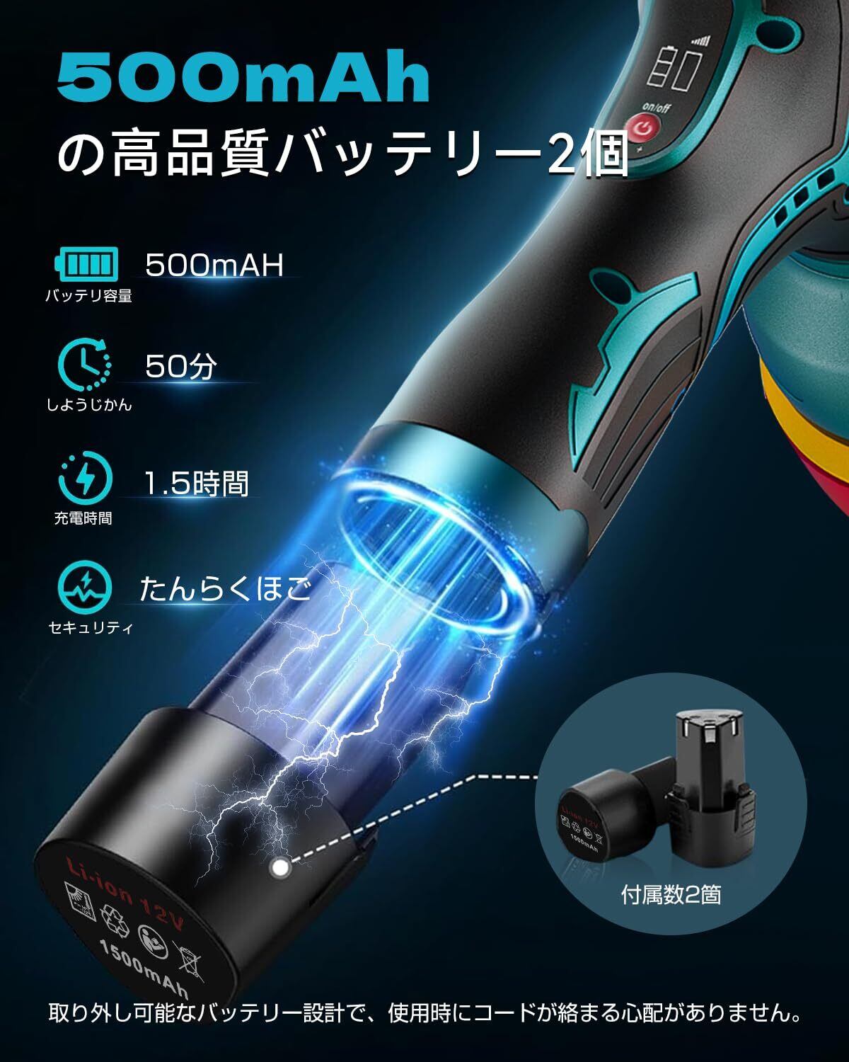 【問い合わせ·包装リスト】このたび電動ポリッシャーをお買上げいただきましてありがとうございます。お問い合わせ方法:「注文履歴」→「該当の注文を選択し商品ページに移動する」→「販売元」→「質問する」。お問い合わせには、24時間以内に返信致します。包装リスト:本体 * 1;マジックテープダイヤル * 1;バッテリー * 2;充電器 * 1;紙やすり * 1;平面スポンジパッド * 1;波のスポンジパッド* 1;タオル地パッドカバー * 1;毛バフパッドカバー * 2;ブルータオル地パッドカバー * 2;専用レンチ * 1;取扱説明書 *1 。ポリッシャーの豊富な付属品は、様々な場面と異なる材質の表面を研磨することができます、ワックス、金属のペンキと錆、木材の研磨、浴室の清潔、大理石の研磨などの用途は品物の元の光沢を回復します。