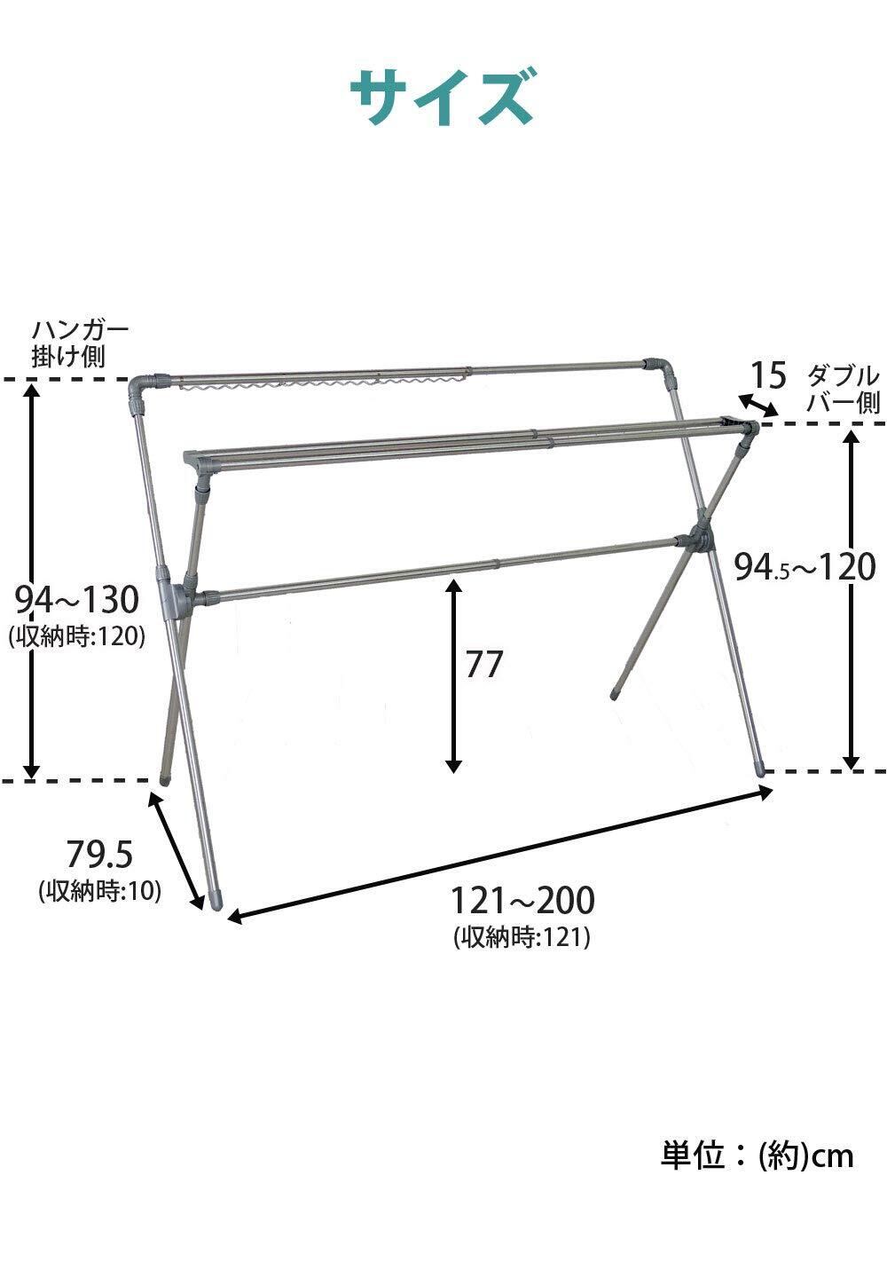ekans(エカンズ) ステンレス 伸縮式 多機能ふとん干し ダブルバータイプ 3~5人分 EX-701W