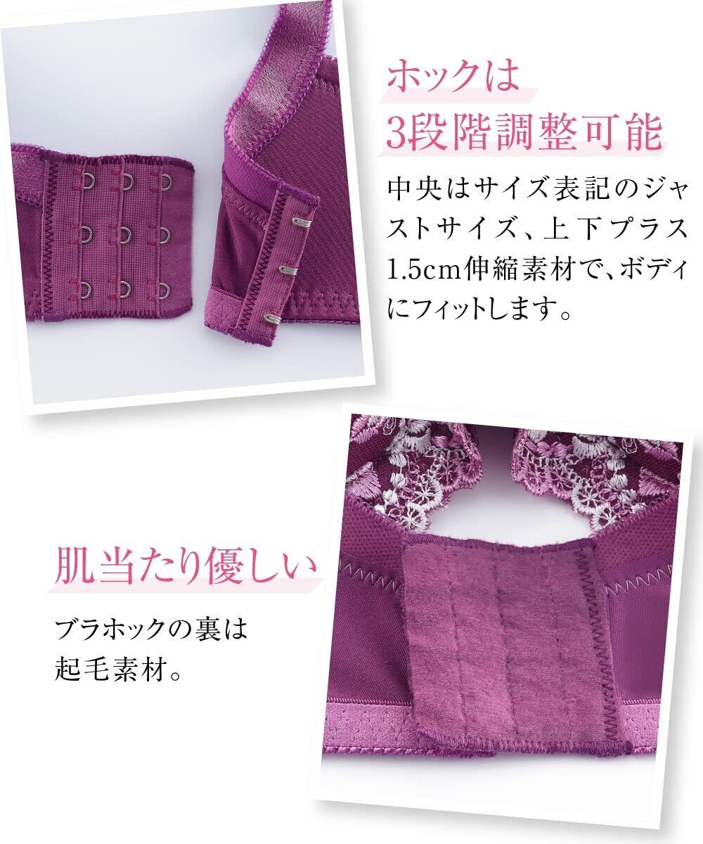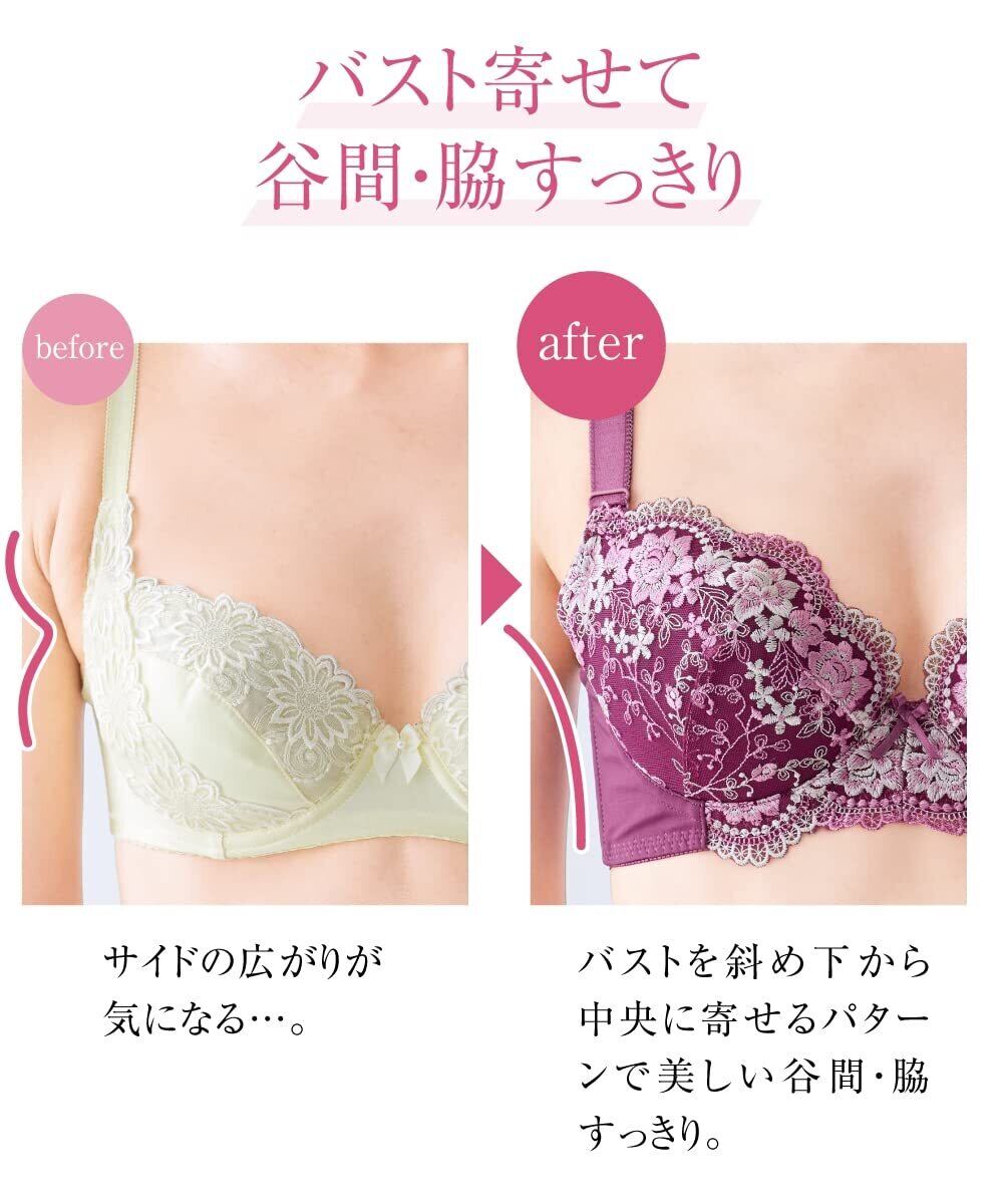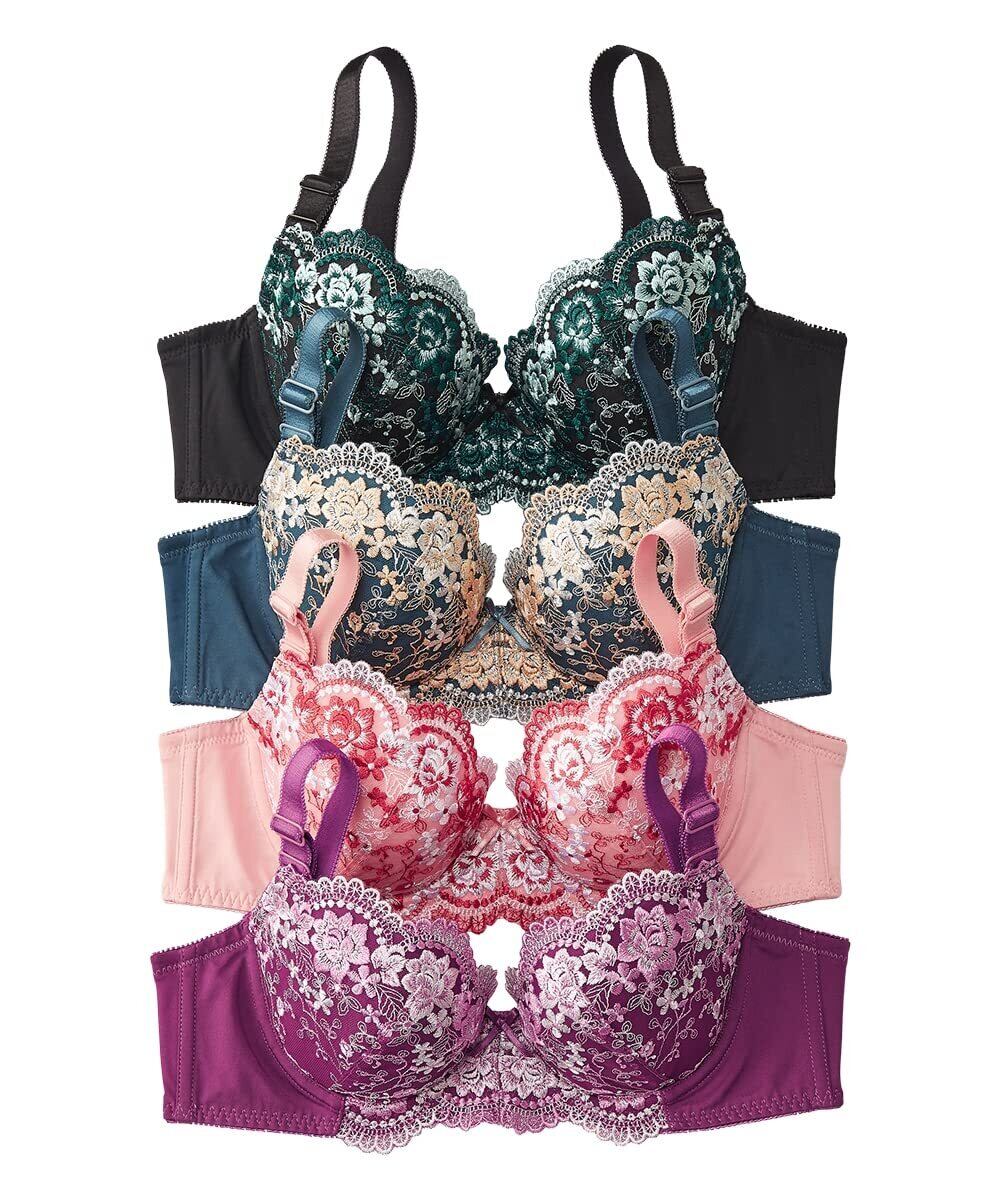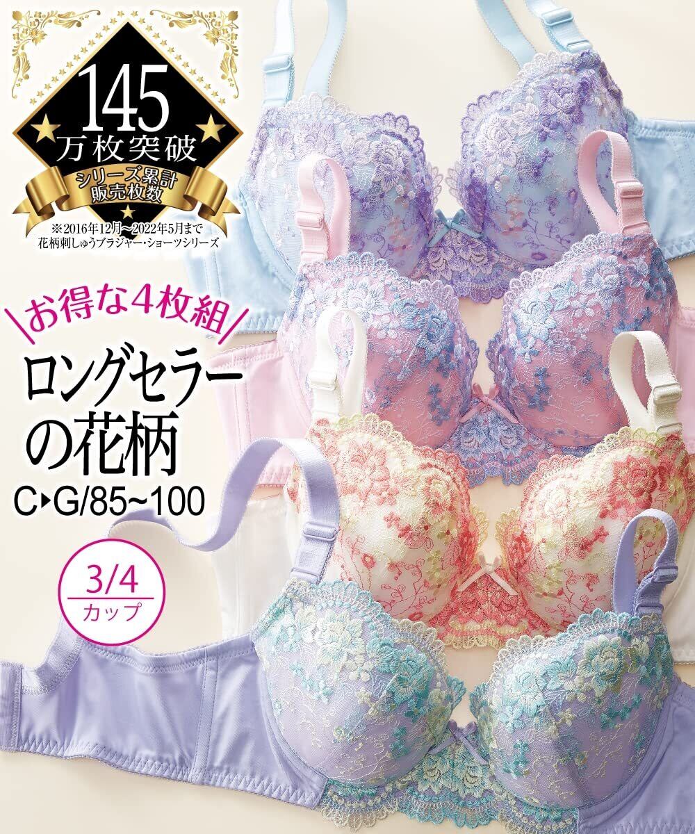 豪華な花柄刺しゅうの色違い4枚組で、毎日違うデザインを楽しめます。バストを包み込んでスッキリ見せてくれるので、シルエットが気になりません。