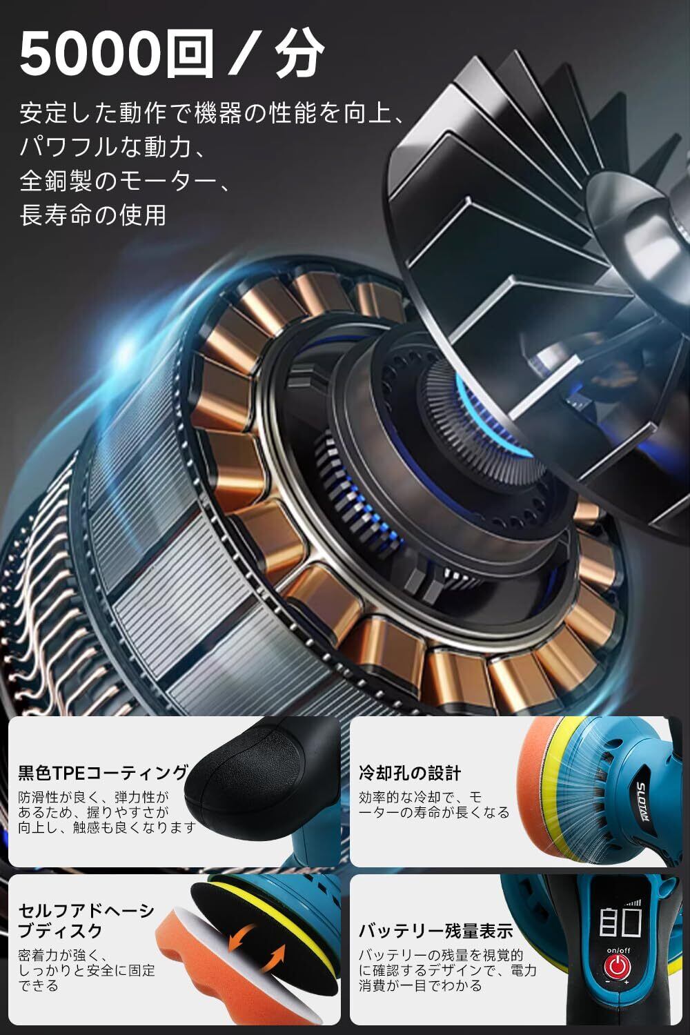 ポリッシャー 充電式 ダブルアクション ポリッシャー 大容量バッテリ一2個搭載 車 コードレスポリッシャー 充電式ポリッシャー 電動ポリッシャー