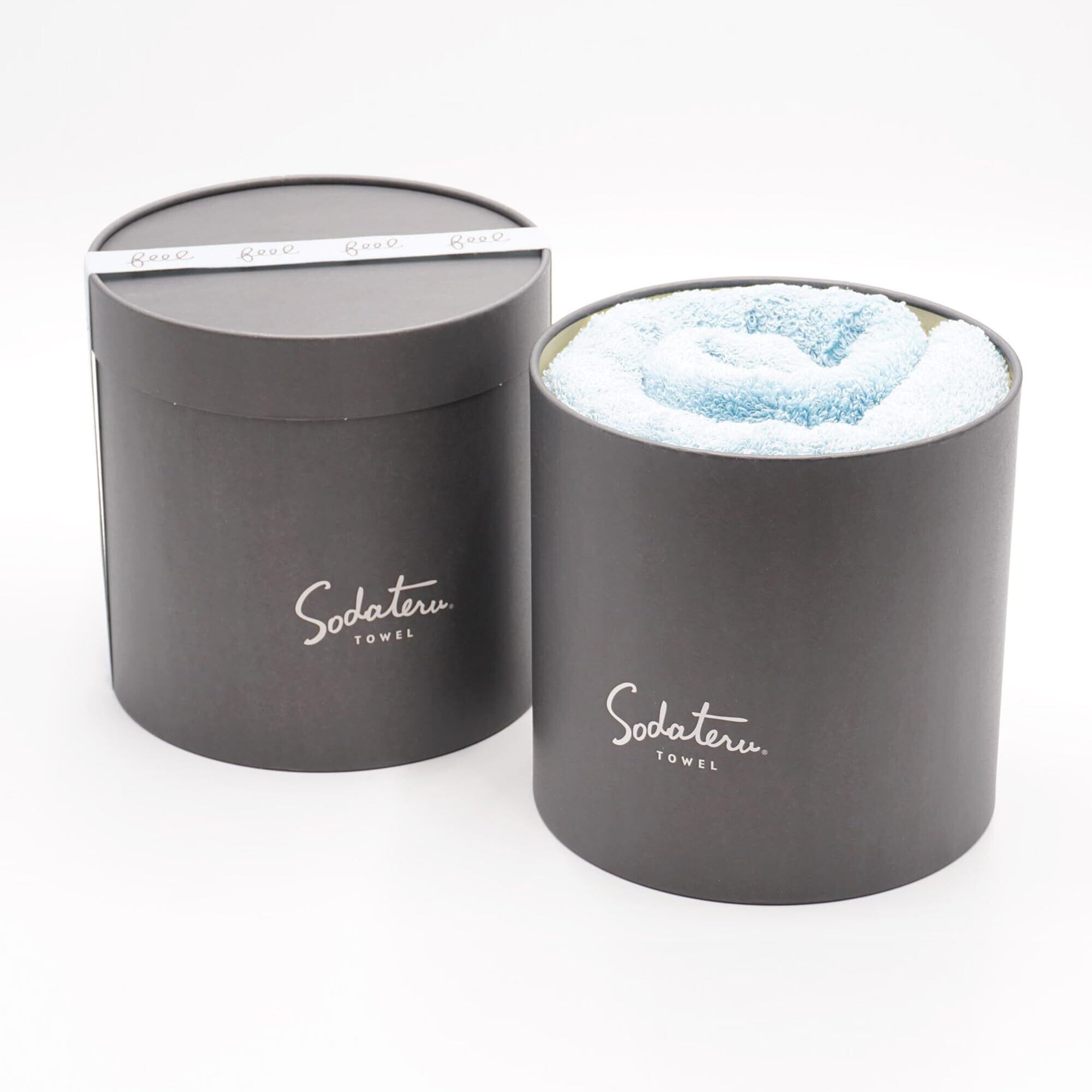 【スペック】タオルサイズ:60×120cm│ボックスサイズ:φ16×H16.5cm│素材:綿100%│お渡し用バッグ(別売)サイズ:S