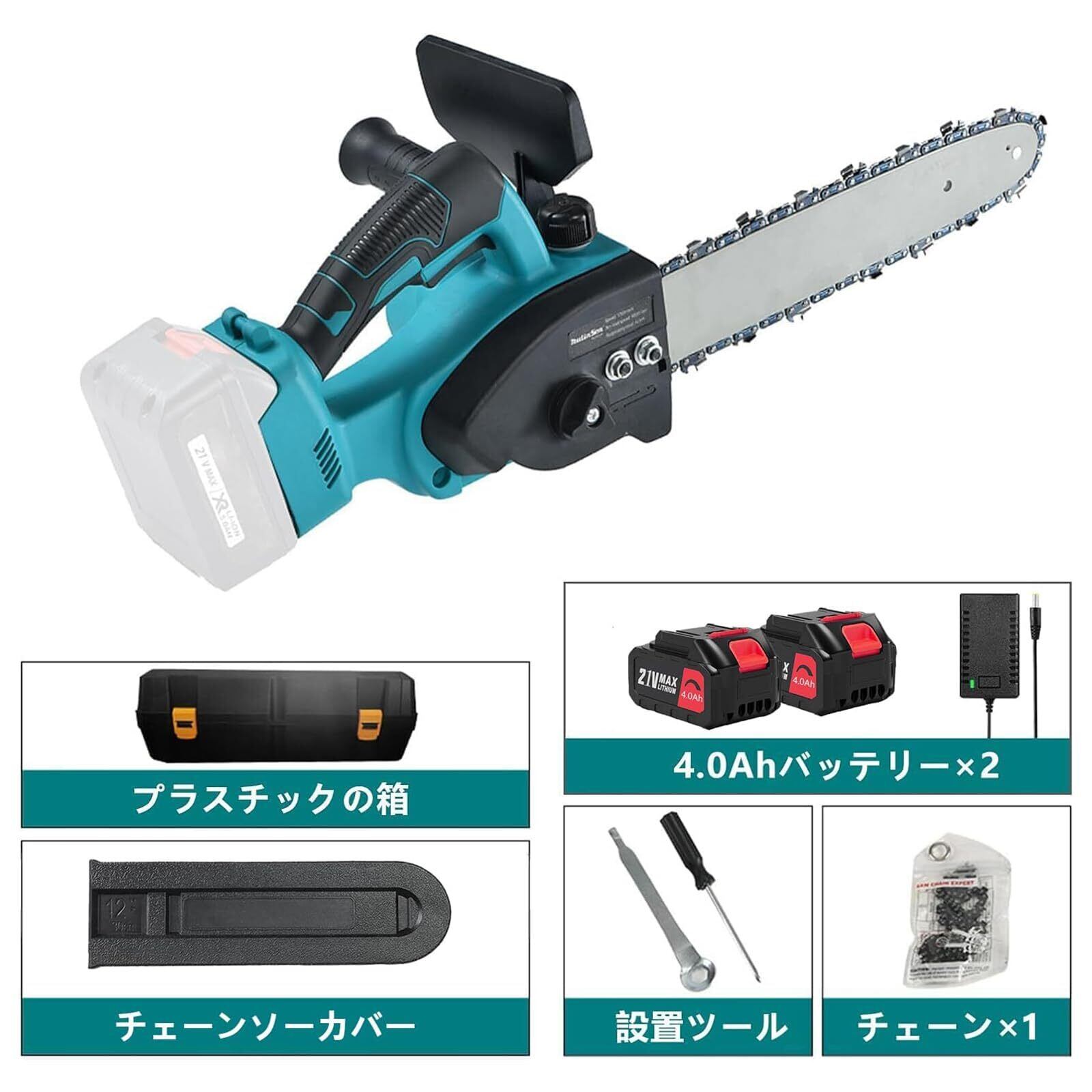 【数量限定】チェーンソー 充電式 ブラシレス 12インチ 切断径350mm 18V互換 4Ahバッテリ2個 PSE認証済み コードレス 電動チェーンソー 自動給油 ポータブル ハンディ ミニ 家庭用 木工切断 大工道具 園芸設備 伐採 薪作り 操作が簡単 父の日 誕生日プレゼント 日本語取扱説明書(青) | ニコニコSHOP
