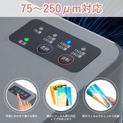 【幅広く対応】335mmの挿入口は、名刺サイズからA3サイズまで対応し、75~250μmの薄紙から厚紙までの標準フィルムを使用可能です。