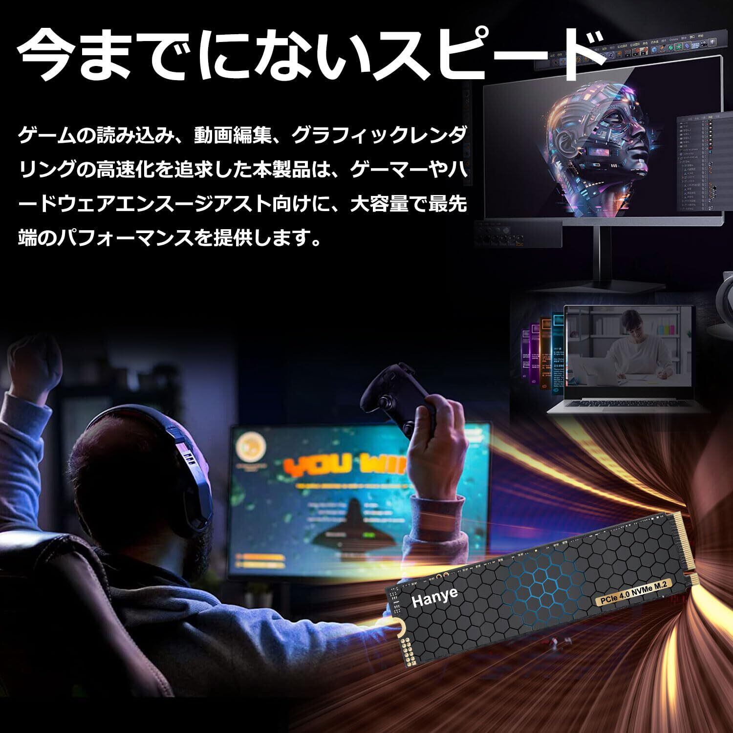 Hanye 内蔵 SSD 2TB 新型PS5 PS5動作確認済み PCIe Gen4x4 M.2 NVMe 2280 最大読込:7300MB/s 最大書込み:6300MB/s 3D NAND グラフェン放熱シート付き HE80-2TGHS 国内正規品メーカー5年保証