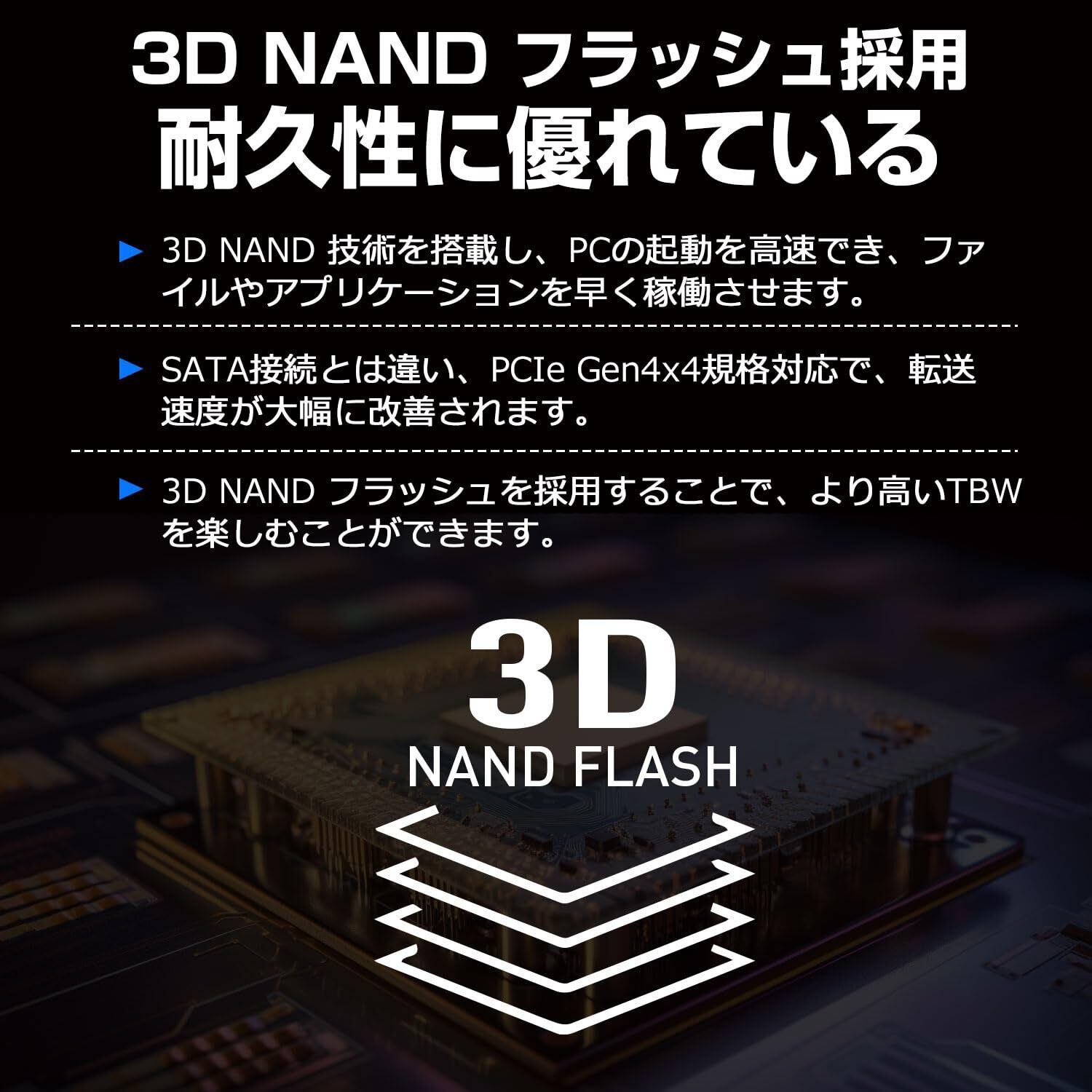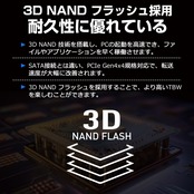 PCの起動を高速でき、ファイルやアプリケーションを早く稼働させます。SATA接続とは違い、M.2(M key)規格対応で、転送速度が大幅に改善されます。より高いTBWを楽しむことができます。