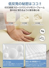 【理想の寝心地を追求!60D密度低反発ウレタン】低反発枕が、高密度で作らないと品質・耐久性が安定しないのが特徴です。低密度で作ると、触った感じやわらかそうなんですが、頭置いても包まれる感じはありません。60D密度スローリバウンドメモリーフオームは低反発ウレタンの中でスーパーハイクリティとも言えます。 枕に頭を乗せると、頭の形に沿ってウレタンがぐんぐん沈み込んでいき、オーダーメイドのような抜群のフィット感を得られます。 仰向け、横向きなど、どの姿勢にも枕が頭の形に合わせて柔軟に変化し受け止めてくれるので、頭の重さが均等に分散されて楽な姿勢で安眠できます。