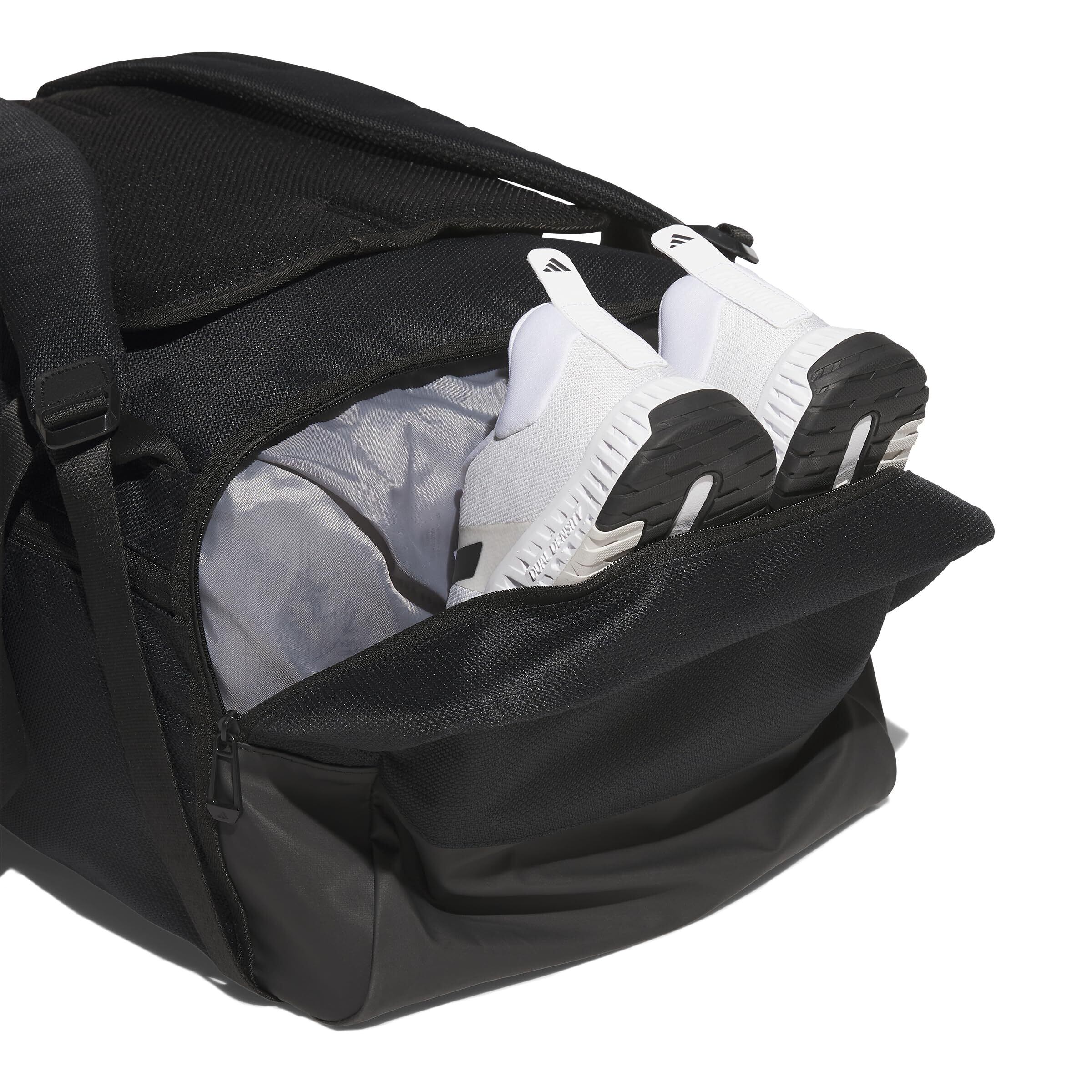 ジムに向かうときや街を出るときにも便利な、マルチに使えるダッフルバッグがあれば、すぐにアドベンチャーに出かけられる。洗濯物用コンパートメントやシューズ用ポケット、小物用のインナーポケットなど、複数の収納スペースを装備しているから、持ち物をそれぞれ整理しやすい。ダッフルバッグとして手に提げたり、バックパックとして背負ったりできる2ウェイ仕様。街の人混みの中を歩くときや長距離を歩いて移動するときなど、環境やコンディションによって持ち方を選べる。 この製品は、リサイクル素材を50%以上使用。製造された製品の素材をリユースすることで、ゴミの量、限りある資源への依存、そしてアディダス製品のフットプリントを減らすことにつながる。