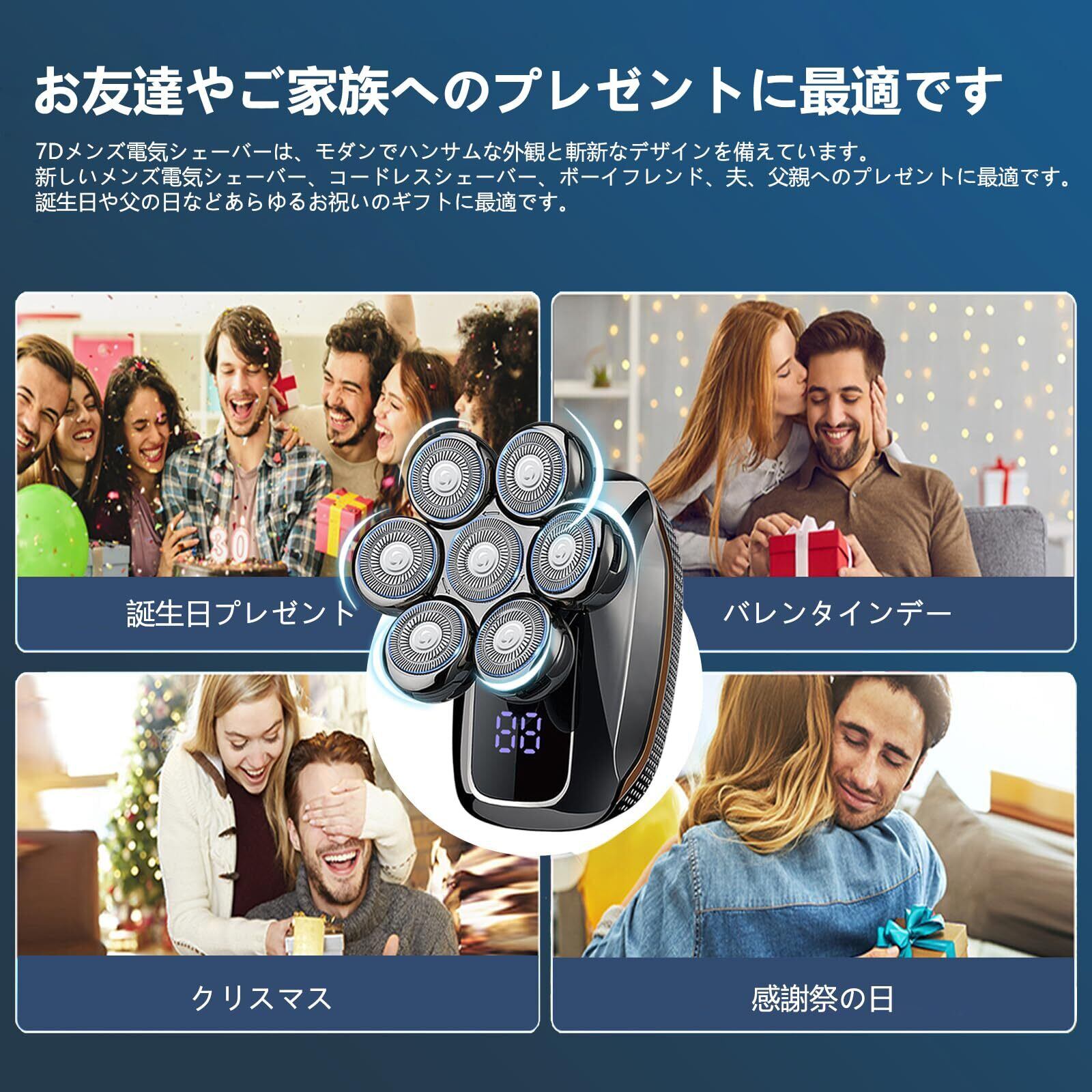 【新着商品】スキンヘッド用シェーバー スキンヘッド シェーバー メンズ 髭剃り 電動シェーバー メンズシェーバー 6in1 電気シェーバー 男性用 IPX7防水 乾湿両用 回転 ひげそり 電動 鼻毛カッター 男性用 ヘア 顔/頭剃り 散髪 洗顔プラシ 水洗い可 Type-C充電式 LEDディスプレイ 父や夫への贈り物 ギフト ギフトセット