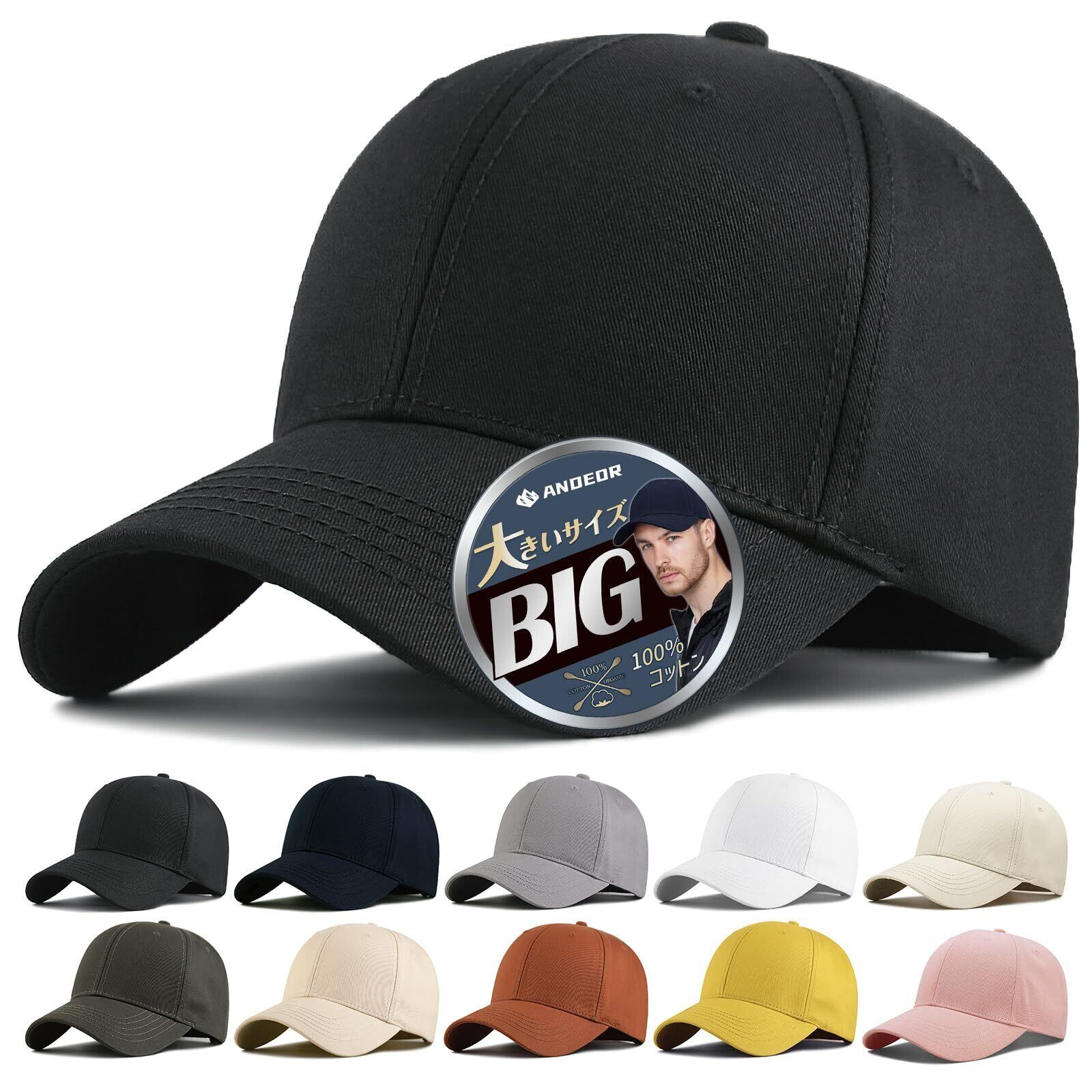 【在庫処分】[Andeor] キャップ メンズ 大きいサイズ 帽子 【特大60-66.5cm・UPF50+測定済み・2重型崩れにくい】 キャップメンズ 深め 紫外線対策 メッシュ 刺繍 シンプル おしゃれ 野球帽 調整可能 ゴルフ アウトドア 男女兼用 四季 3タイプ展開 | ニコニコSHOP
