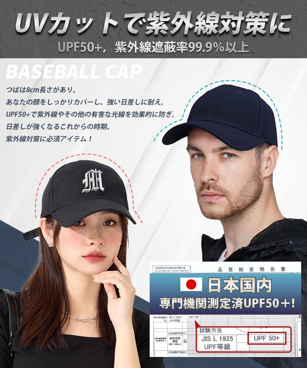【UPF50+・紫外線対策】専門検査機関のUV遮蔽率測定試験で証明済み。肌を傷める紫外線の99.9%以上(UPF50+)をカットした野球帽です!つばの長さは8cmがあり、あなたの顔をしっかりカバーし、強い日差しに耐えるメンズキャップです。UPF50+で紫外線やその他の有害な光線を効果的に防ぎ、目や髪の毛、お肌をお守ってくれます。日差しが強くなるこれからの時期、紫外線対策に必須アイテム!