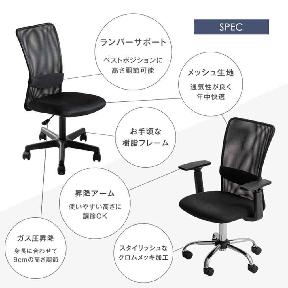 【2022最新】タンスのゲン オフィスチェア 単脚 腰楽ランバーサポート クロムメッキ メッシュ生地 昇降 ハイバック ロッキング デスクチェア 学習椅子 コンパクト 65090004(81349)
