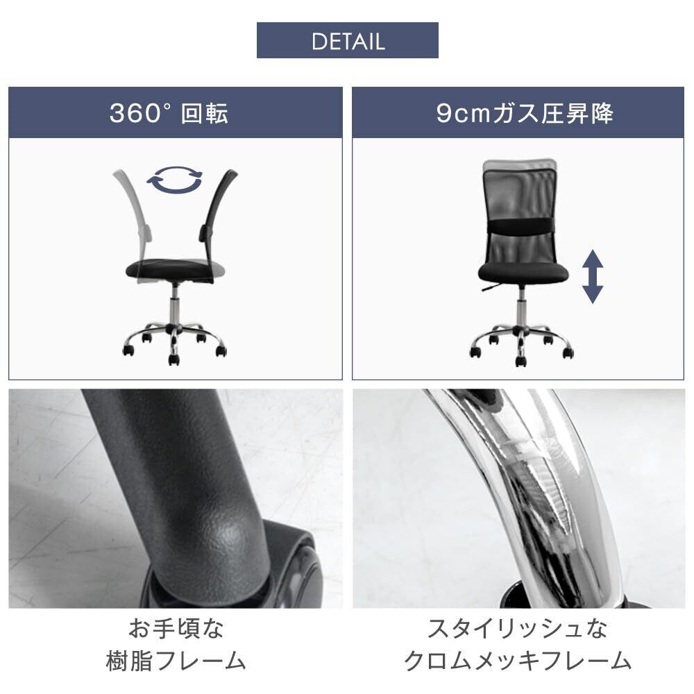【スタッフのおすすめポイント!】 ・狭い空間でも使いやすいコンパクト設計 ・通気性に優れたオールメッシュ ・腰を支えるランバーサポート付 ・スタイリッシュなクロムメッキフレーム