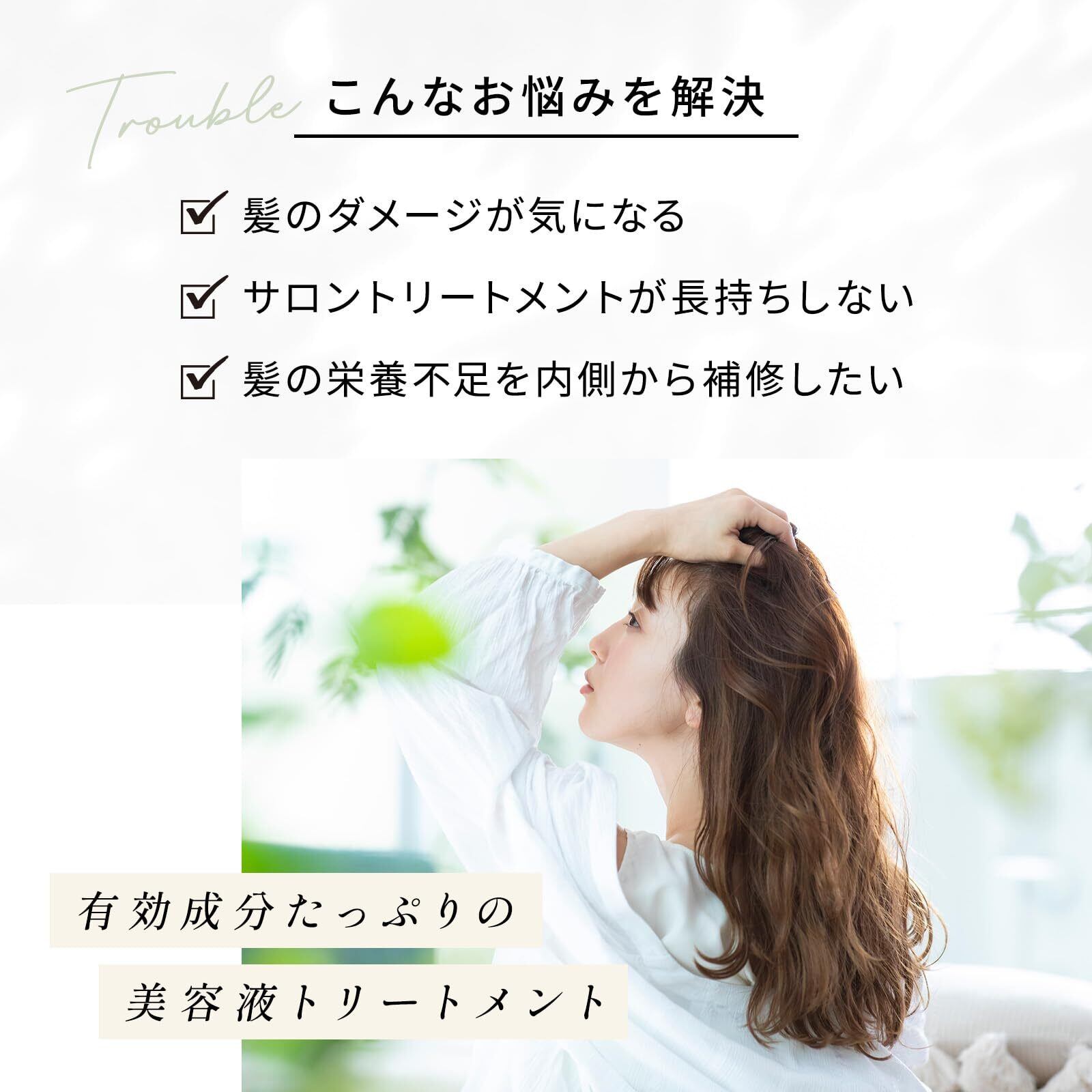 【トリートメントは推奨値以上の成分】プラセンタ、ヒアルロン酸等の補修・保湿成分は、全て推奨濃度以上を配合。高濃度なトリートメントで髪の内側からしっかり補修します。