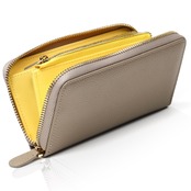 【数量限定】LASIEM(ラシエム) 【極小長財布】 財布 レディース 長財布 小さい コンパクト 本革 小さい長財布 短い長財布 スキミング防止 ラウンドファスナー バイカラー グレージュ イエロー | ニコニコSHOP