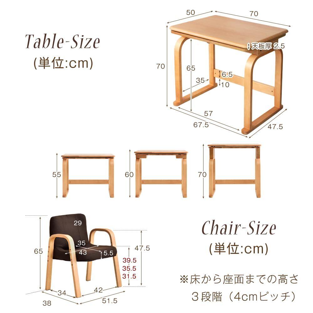・チェアも合わせて4cm間隔、3段階の高さ調節が可能