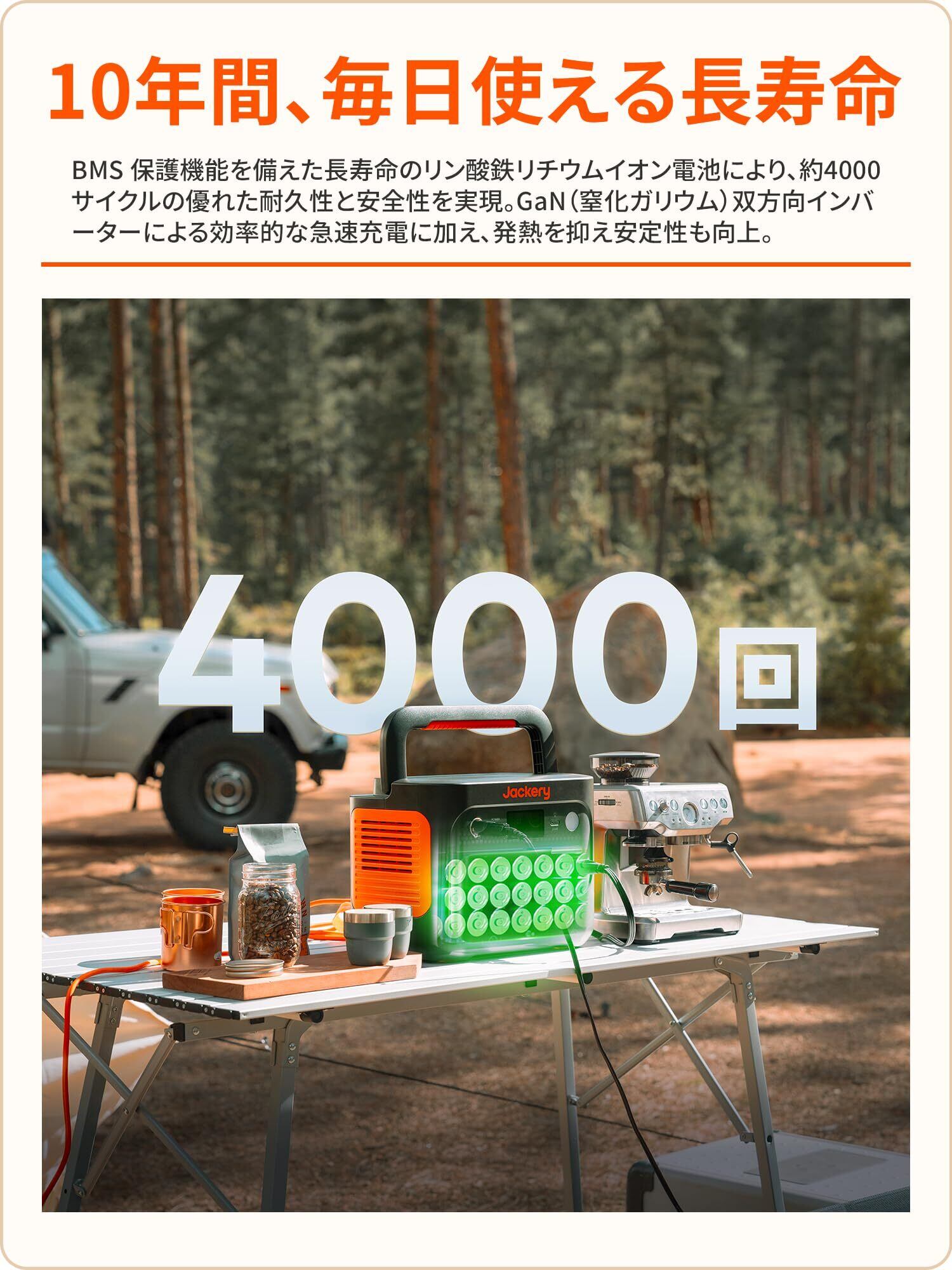 【定格出力1500W、容量1070Wh】60万人に選ばれたJackery大人気1000モデルの後機器、コーヒーメーカー(1120W)、ポータブルエアコン(1000W)、電子レンジ(960W)、ケトル(850W) などの家電製品にも対応できます。ドライブ、キャンプ、家族旅行、非常用、防災用に多用途。