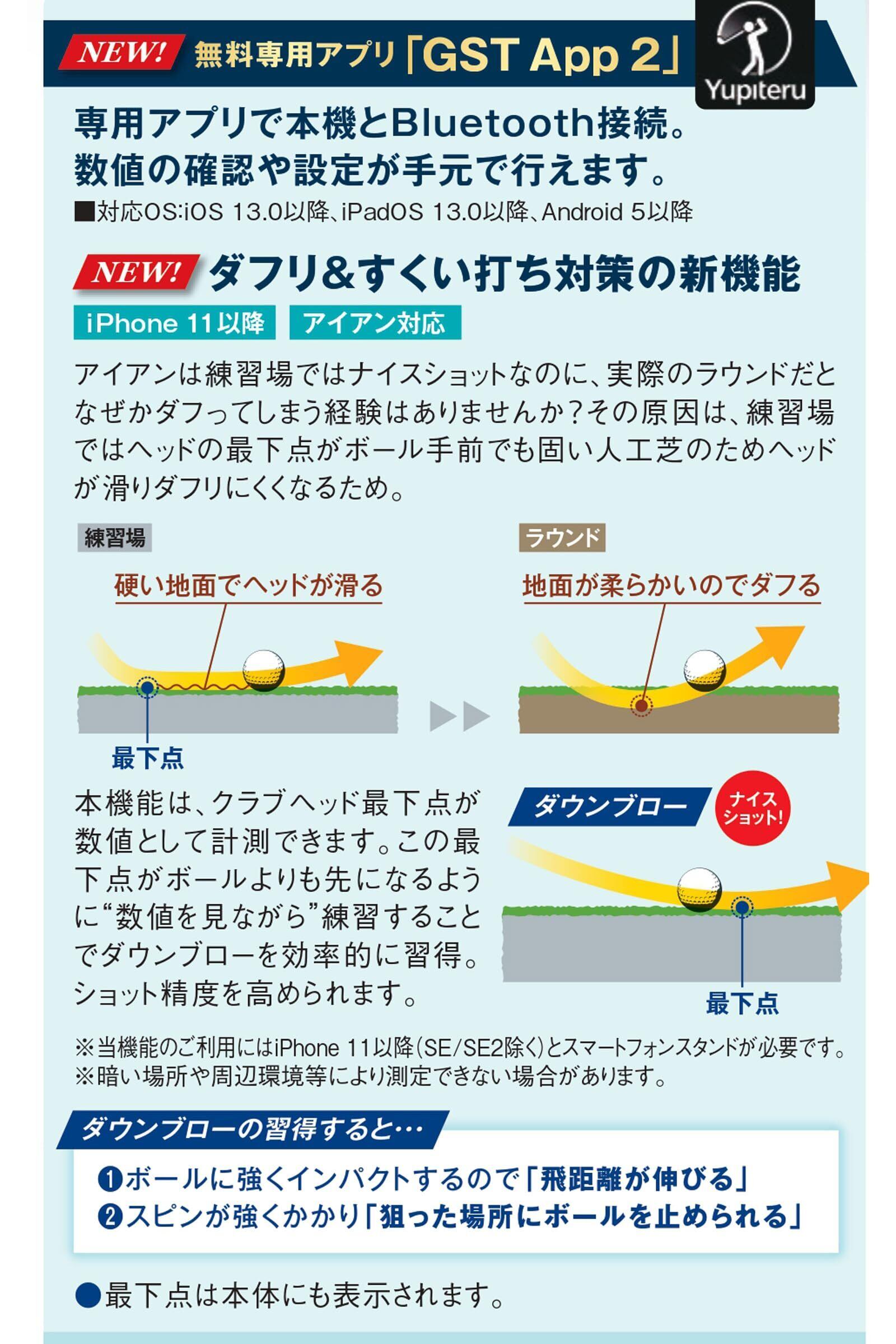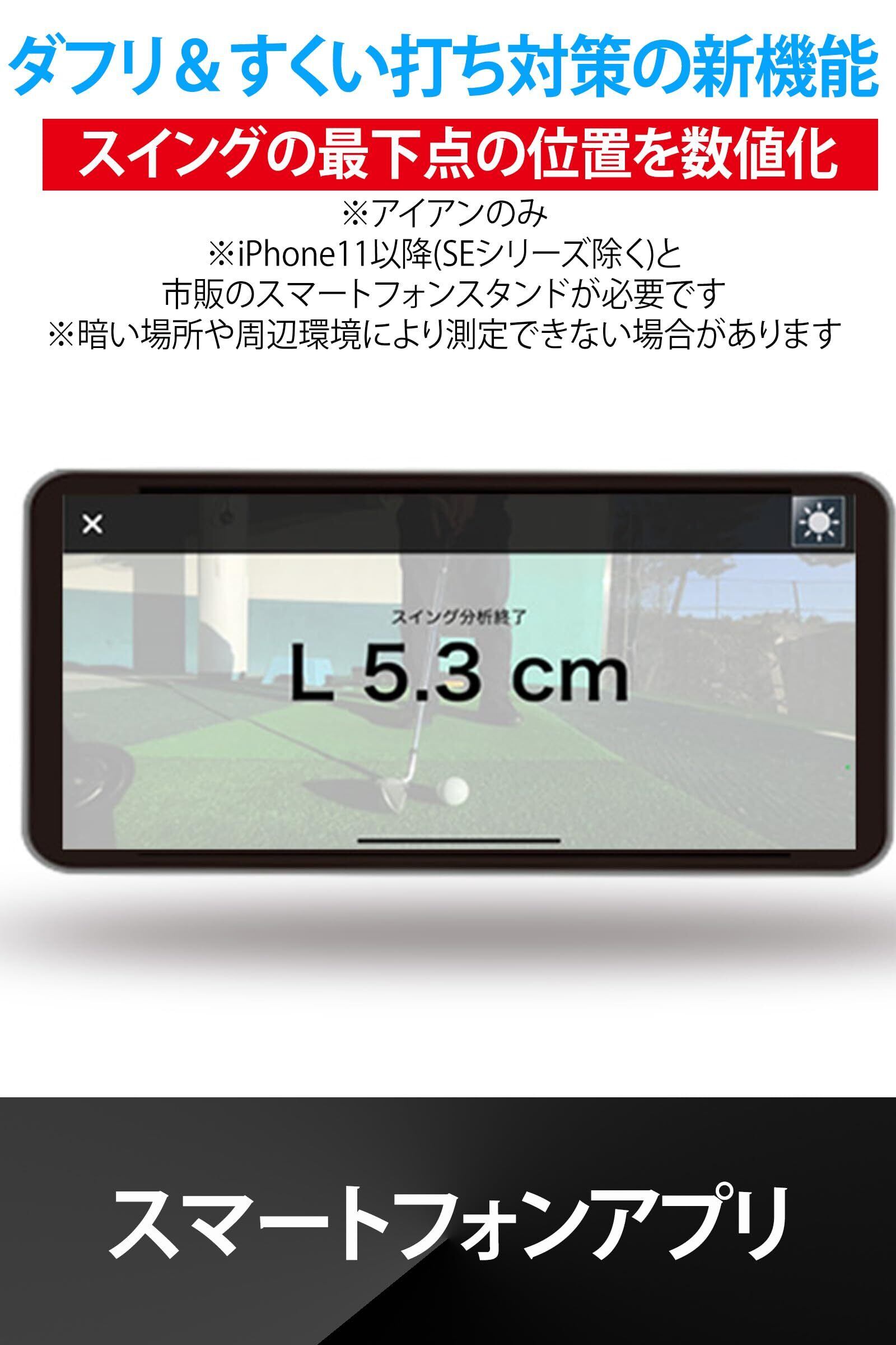【NEW】スマートフォン用アプリで「スイング解析」が可能に!iPhone11以降(SE,SE2除く)と市販のスマートフォンスタンドを使用すれば、スイング最下点の位置を測定・数値化!