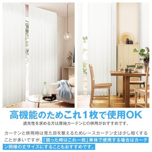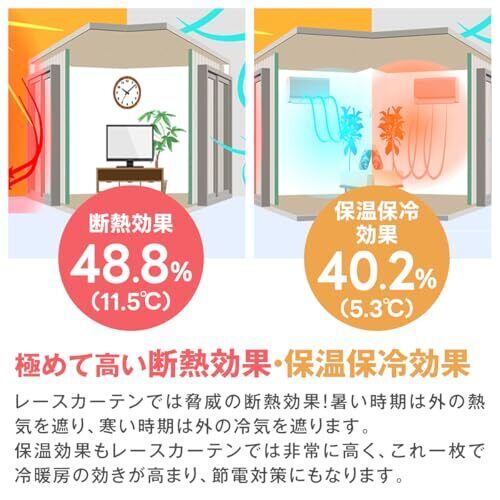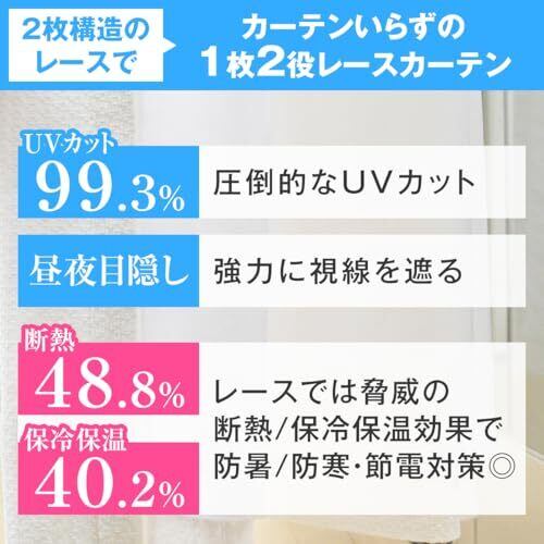 [カーテンくれない] 節電対策に「困った時はこれ一枚」 二重レースカーテン 断熱 遮熱 保冷 UVカット率【99.3%】 昼夜目隠し 二枚仕立て 色:ホワイト サイズ:(幅)100×(丈)176cm×2枚組