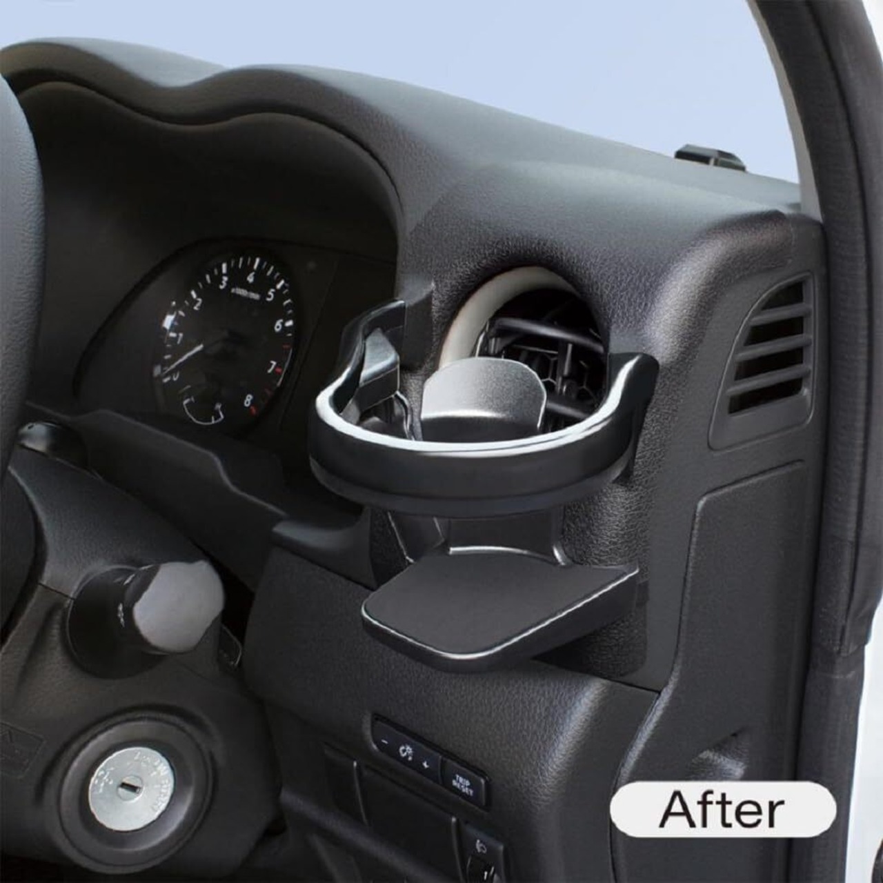 ●NV350 キャラバン E26系 バン/ワゴン/マイクロバス(2012年6月〜2022年12月現在)の右ハンドル車のエアコン送風口パネルに取付できるドリンクホルダーです。