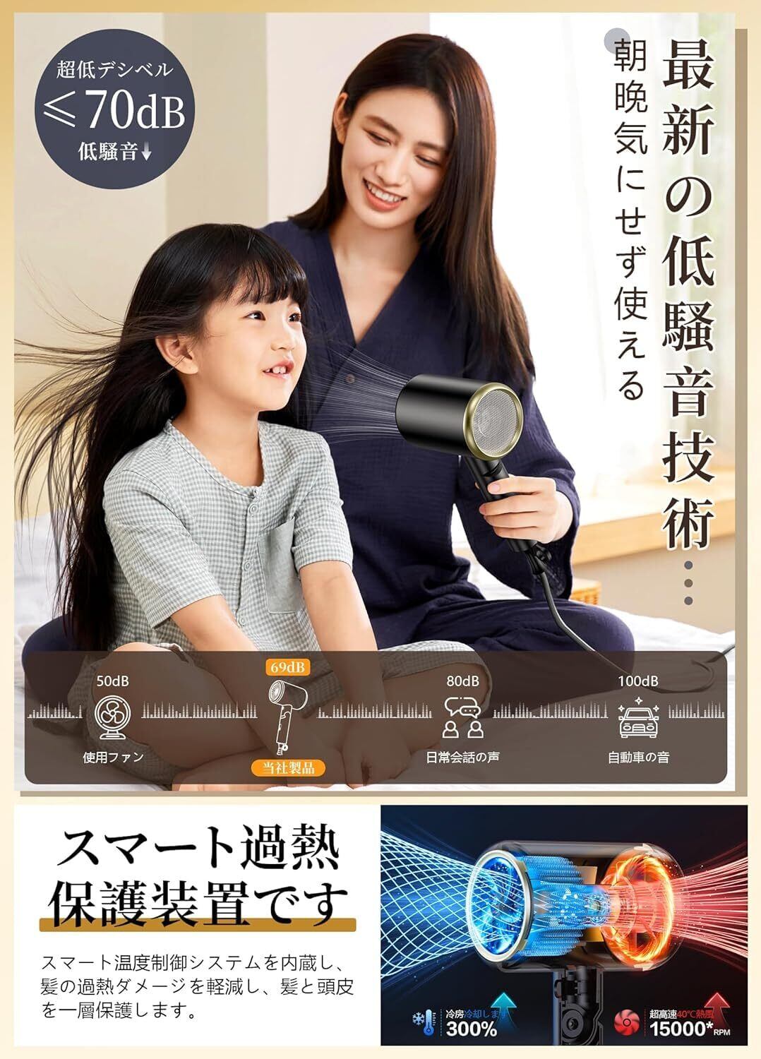 【安全設計・過熱保護機能】NTC過熱保護装置が付き、ヘアドライヤーが危険な温度まで上昇すると自動的に電源を中断することになって危険を免れます、安心して使用できます。高級感のあるデザインで、ギフトにも最適です。シンプルでおしゃれな外観は、男性や女性を問わず喜ばれます。子供やお年寄りにも安心してお使いいただけます。