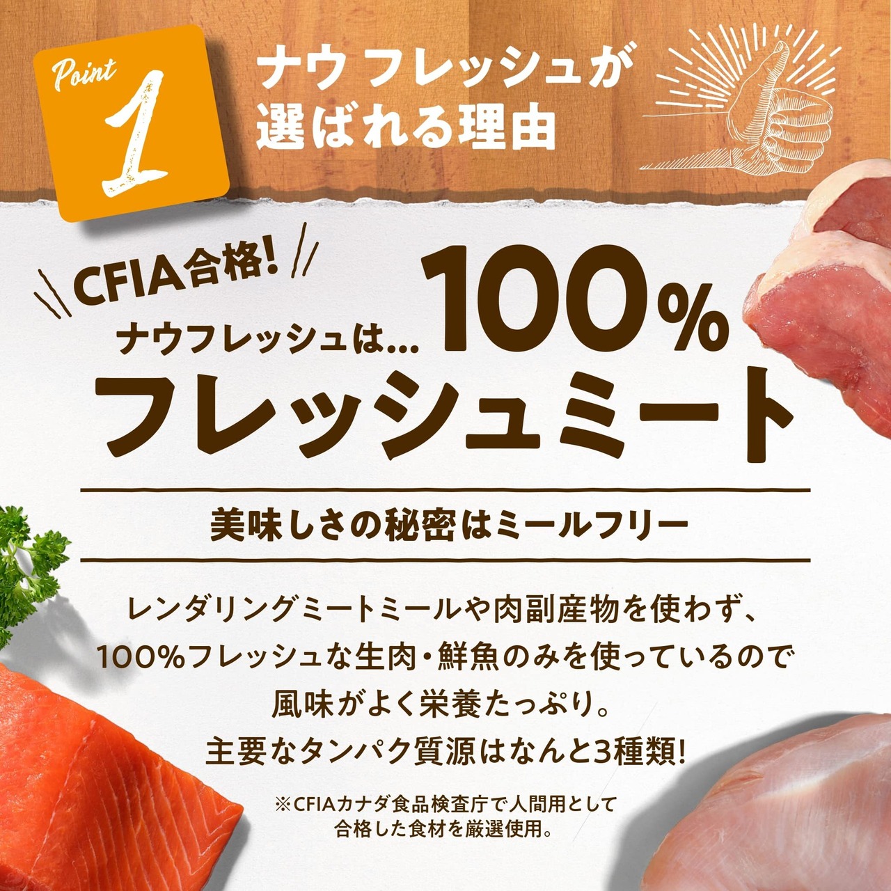 【新鮮という品質をお届け】ナウフレッシュは、家族の大切な一員である愛犬のために、トコトン新鮮にこだわったナチュラル×ミールフリーのプレミアムフードです。