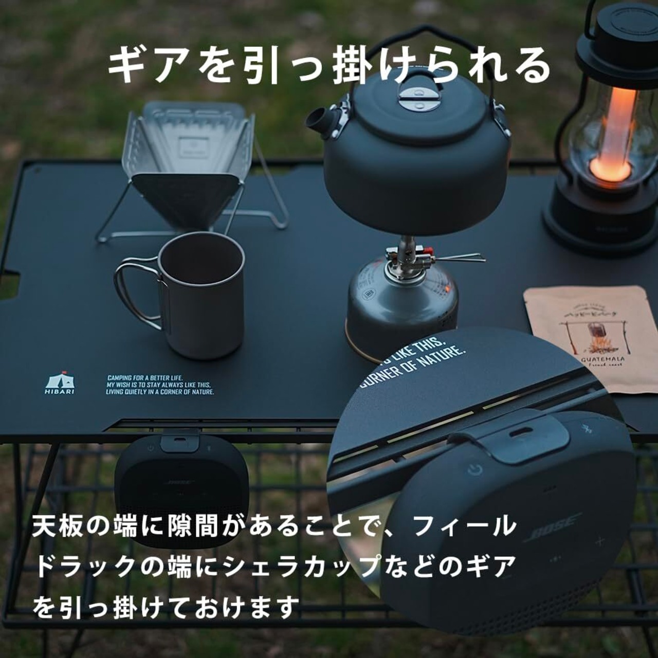 HIBARI フィールドラック キャンピングラック アルミ天板セット 収納ケース付き マットブラック キャンプ収納 コンパクト アウトドアワゴン アウトドアテーブル 折りたたみ テーブル ローチェアアウトドア キャンプテーブル おしゃれ 軽量 (ラック2枚+天板1枚セット)