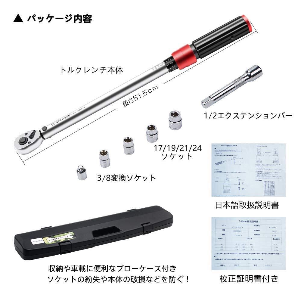 トルクレンチ プレセット型 車/バイク修理レンチ 差込角12.7mm(1/2インチ) 20-220N・m タイヤ交換 17/19/21/24mm 3/8変換ソケット付き ソケットレンチ ケース付き