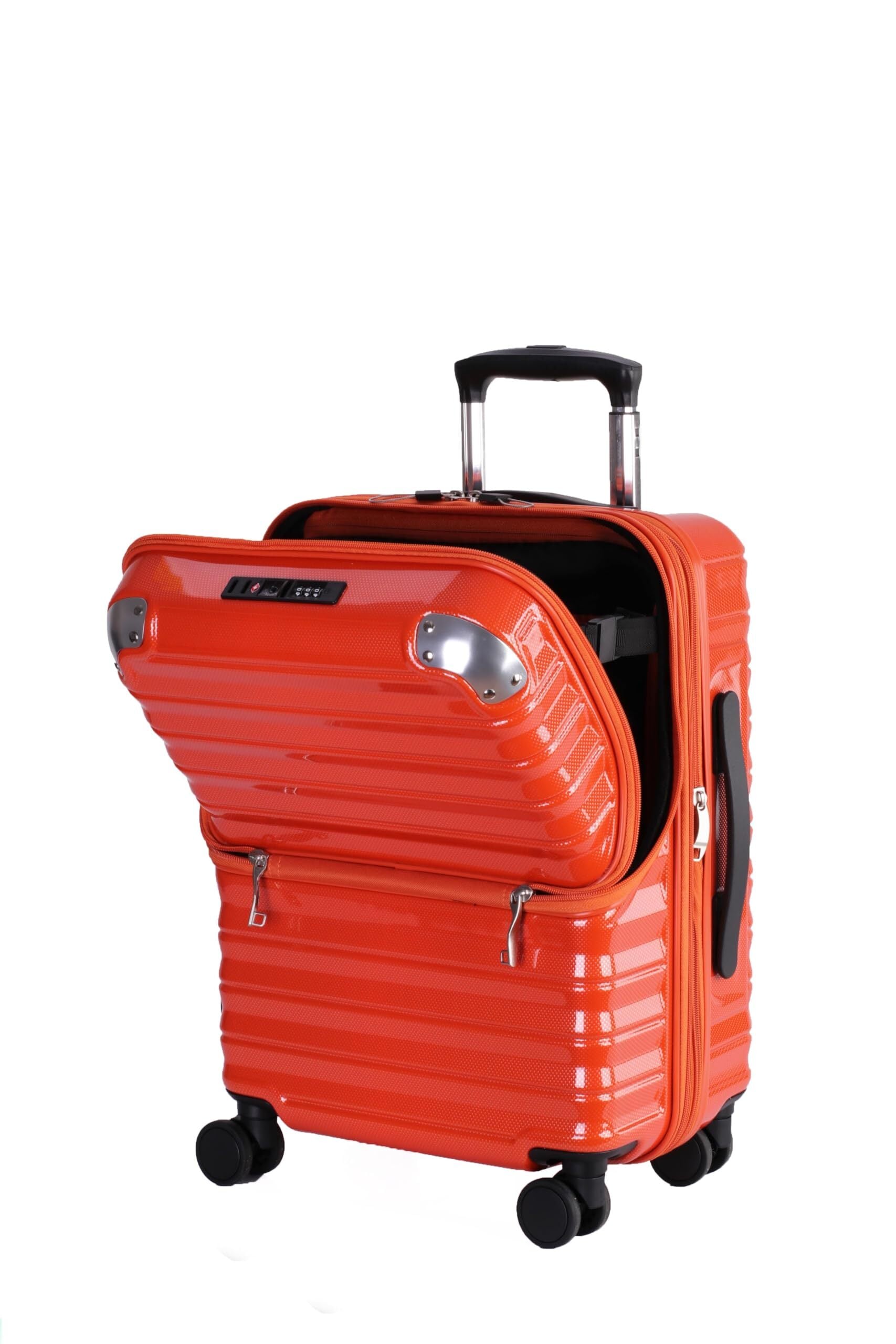 本体を開けずに簡単に荷物を取り出せるフロントオープン機能を搭載したスーツケースです。