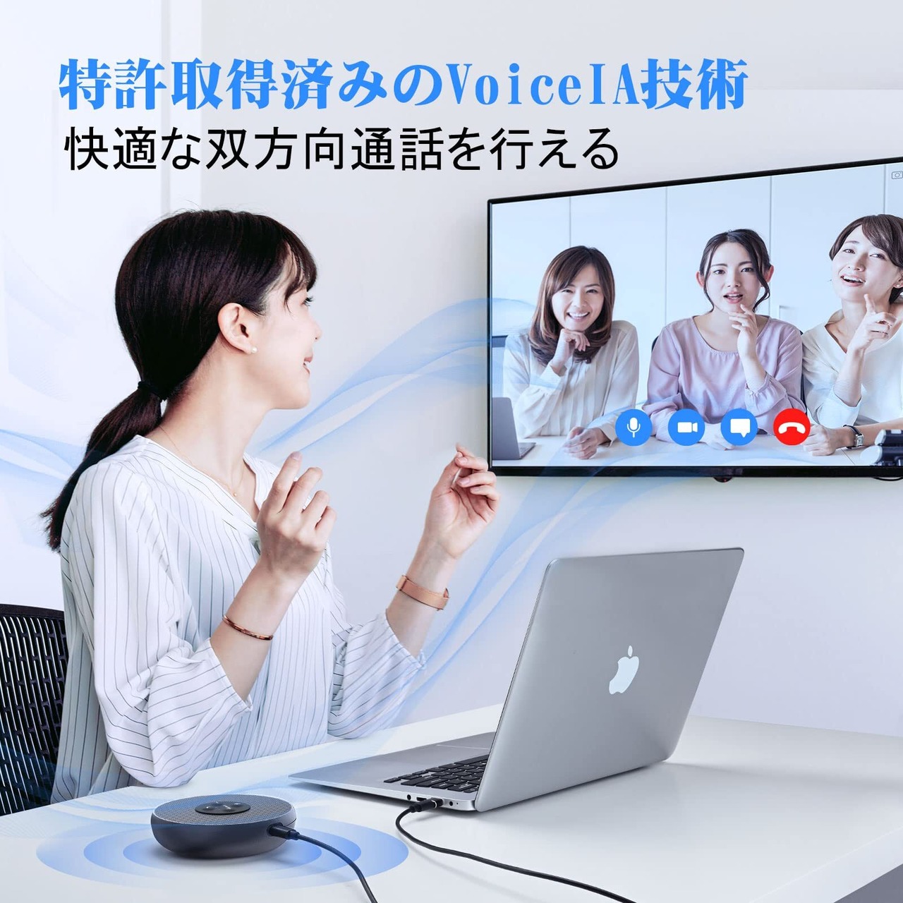【優れた音声処理機能】エコーキャンセリングや残響抑制、ノイズリダクション機能を採用しており、クリアな通話を実現できたスピーカーフォンです。周囲の雑談の音、コピー機・エアコンのノイズ、キーボード打ちの音などを抑制でき、発言者の音を明瞭に展開できます。ストレスのないオンライン会議をサポートします。高品質な通話を保証する「Zoomミーティング」の公式認証を取得し、製品本体のミュートボタンとZoom上のミュート表示が連動するようになります。