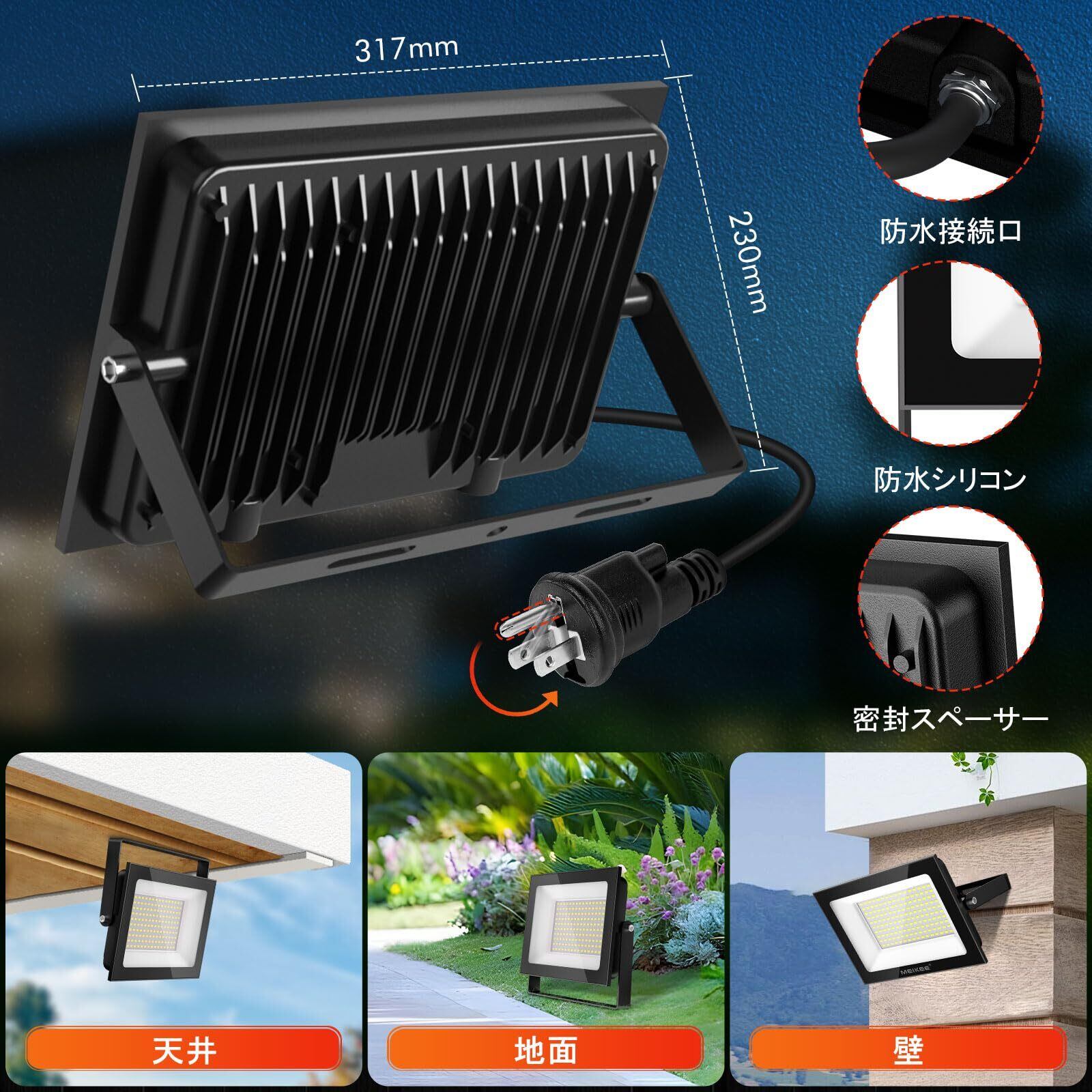 【特価セール】MEIKEE【200W 超曝光 2個セット】led 投光器 作業灯 看板灯 夜間工事 昼光色 駐車場灯 省エネ 豪雨対応 工場 IP66防水 体育館用 倉庫照明 防犯灯 屋外作業 屋内屋外 設置可能 BBQ用 6500K 20000LM 2000w相当 5万時間点灯可能 13年間耐久度 日本語取扱説明書付き PSE認証済み | ニコニコSHOP