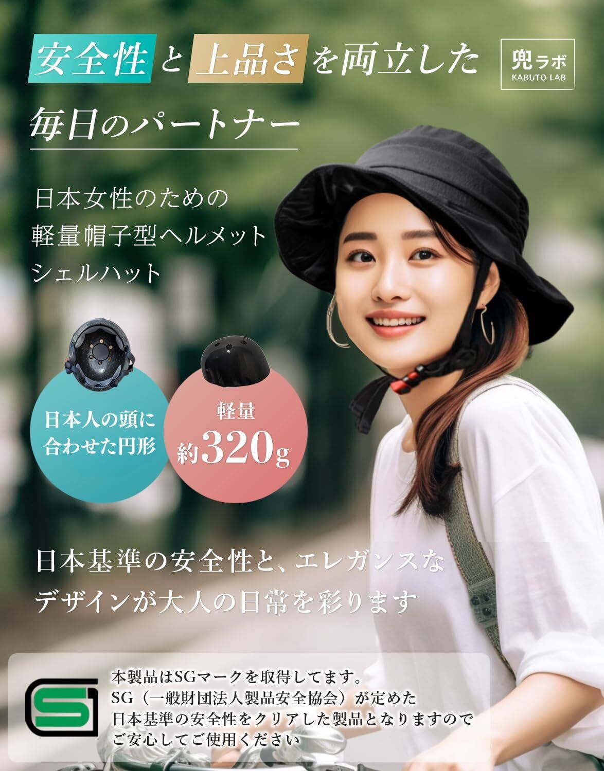 カブトラボ シェルハット 【日本基準の安全性(SG認証)】 ヘルメット 自転車 レディース 帽子型 サイズ:54-57未満