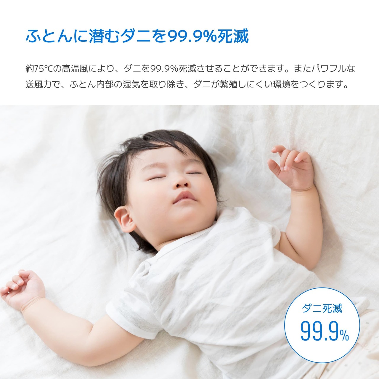High Power : 最高温度75℃のパワフル高温風でダニを死滅。選べる5つのモードでいつでもふかふかで快適。