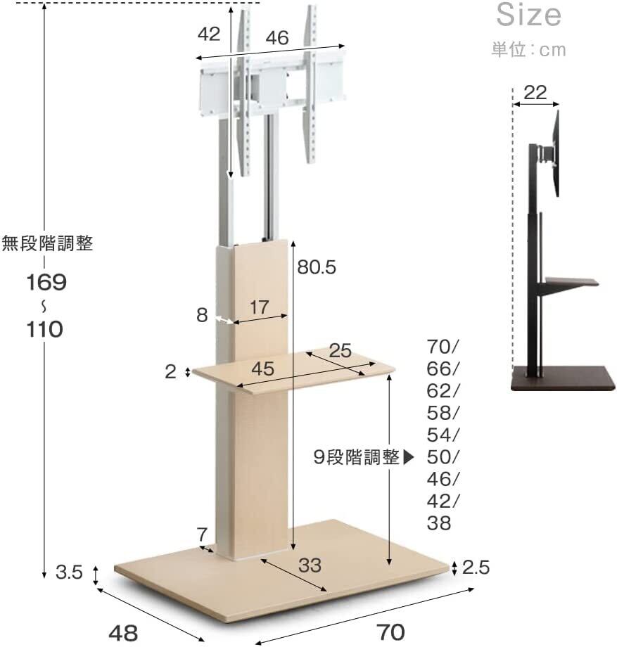 【サイズ】外寸:幅70×奥行48×高さ110~169cm 棚板:幅45×奥行25cm 【重量】約17kg【対応テレビサイズ】32~77インチ