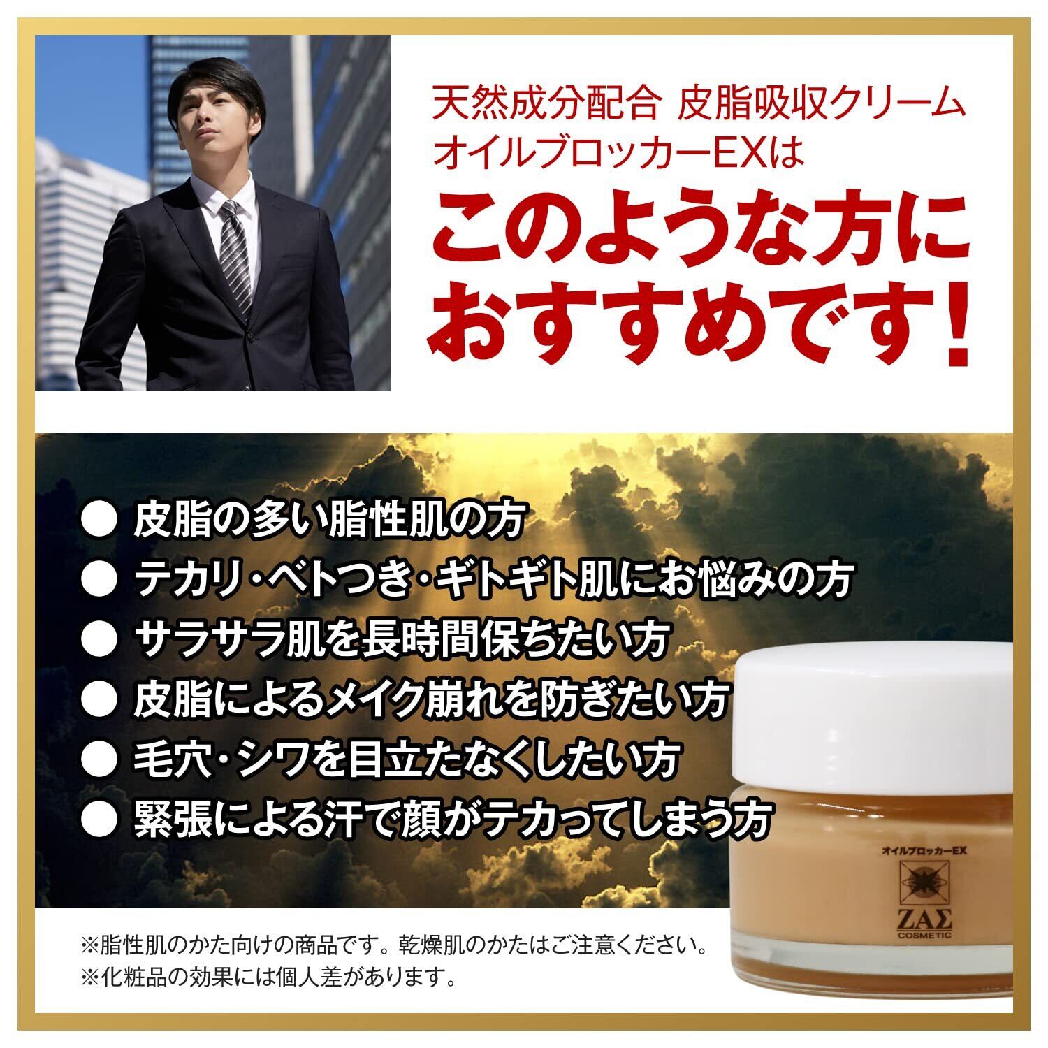 【数量限定】ザス オイルブロッカーEX 20g テカリ防止 クリーム オイリー肌 脂性肌 皮脂 顔汗 抑える 汗止め 毛穴 小じわ 隠し 皮脂崩れ防止 化粧下地 ファンデーション さらさら メンズメイク ZAS | ニコニコSHOP