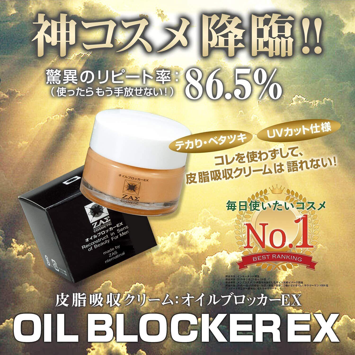 ザス オイルブロッカーEX 20g テカリ防止 クリーム オイリー肌 脂性肌 皮脂 顔汗 抑える 汗止め 毛穴 小じわ 隠し 皮脂崩れ防止 化粧下地 ファンデーション さらさら メンズメイク ZAS