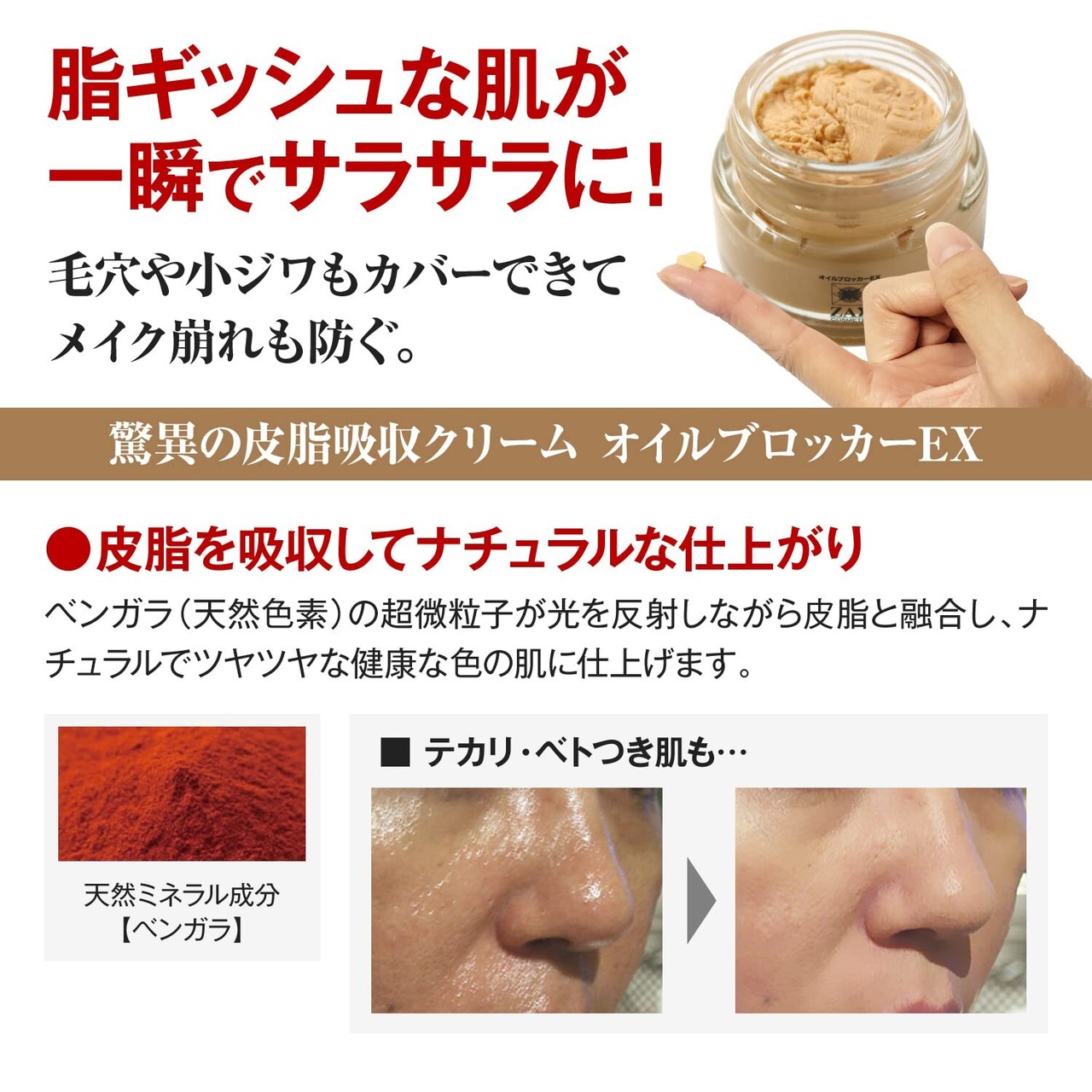 ザスコスメティック:少しの量でテカリを防ぐ!納豆一粒程度の量を伸ばして塗布して2~3ヶ月使用できます。顔汗 テカリ防止 クリーム
