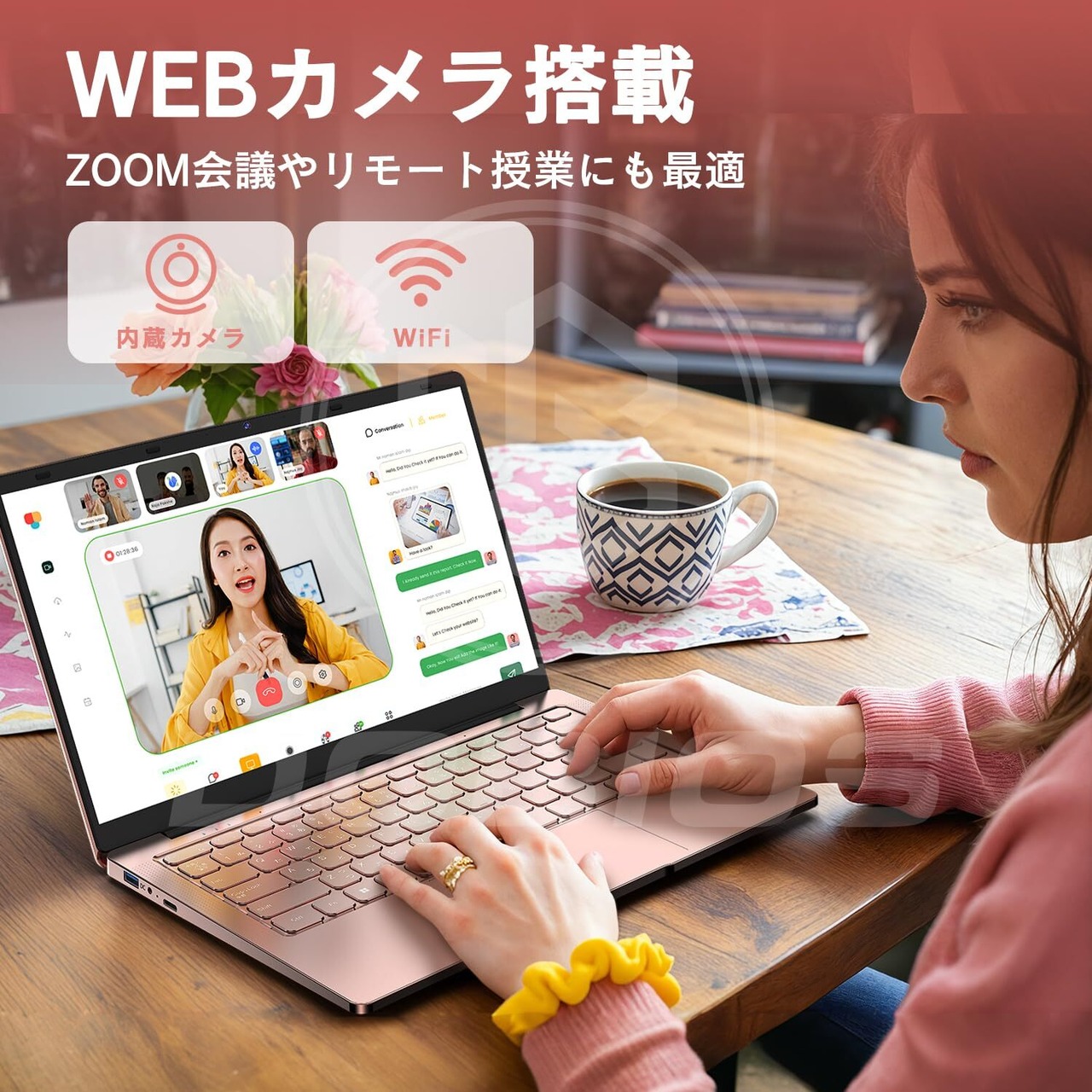 【数量限定】Dobios ノートパソコン 14インチ office搭載 日本語キーボード Windows 11Pro搭載/高速CPU Celeron N4000/WIFI/USB3.0/miniHDMI/WEBカメラ搭載 ノートPC オンライン授業 在宅勤務 パソコンノート 薄型軽量 ラップトップ laptop(ローズゴールド,DDR4 メモリ 12GB SSD 256GB) | ニコニコSHOP