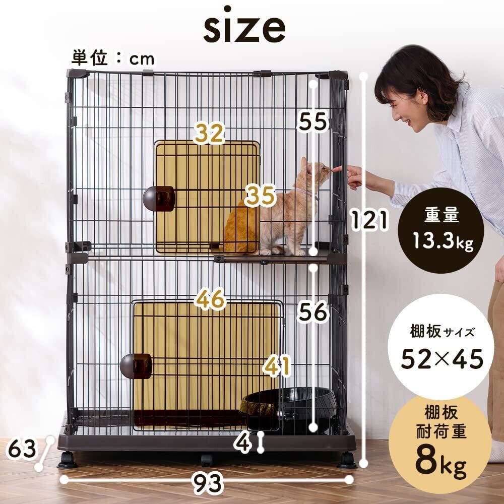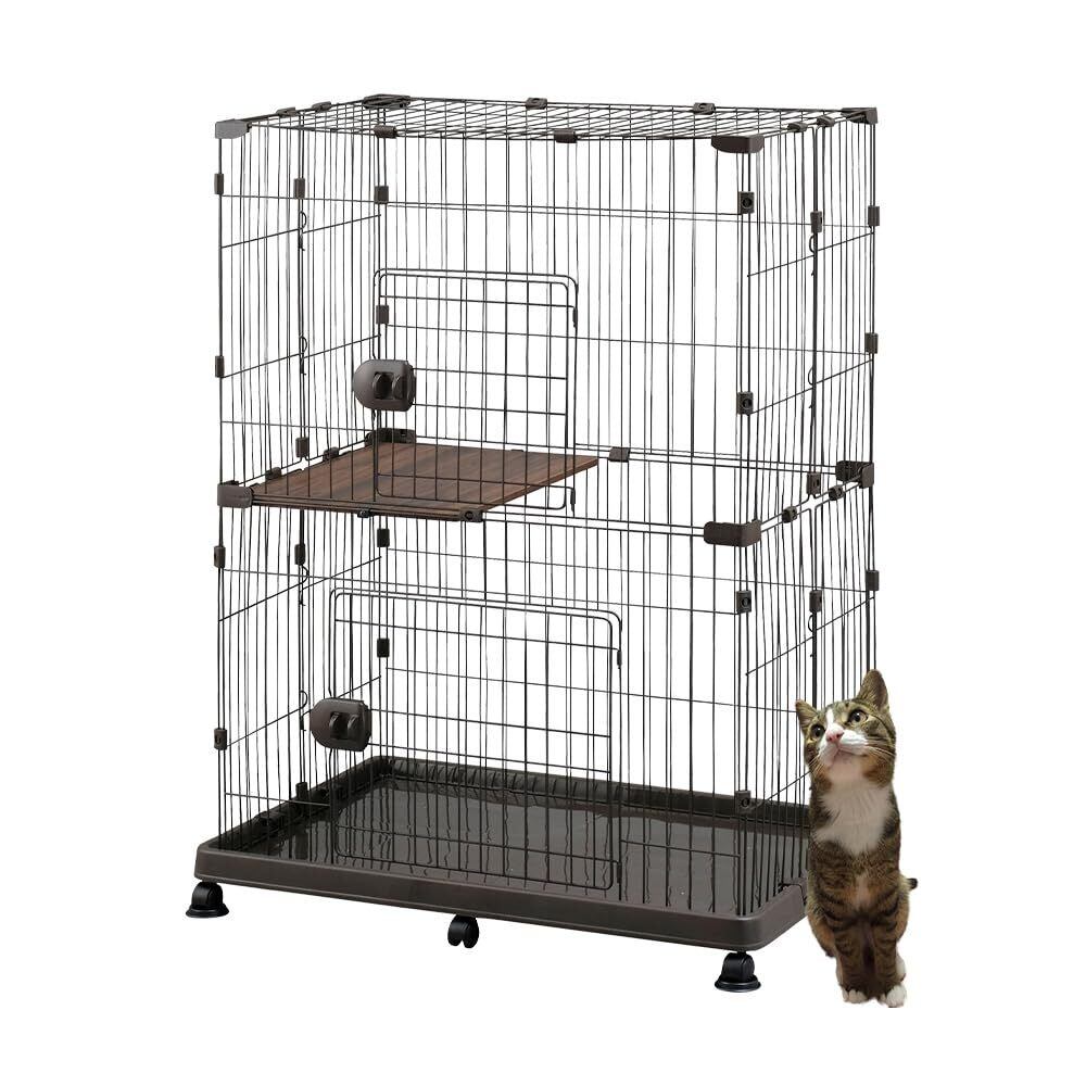 アイリスオーヤマ(IRIS OHYAMA) キャットケージ 2段 キャスター付・簡単組み立て PEC-902V ウォールナット