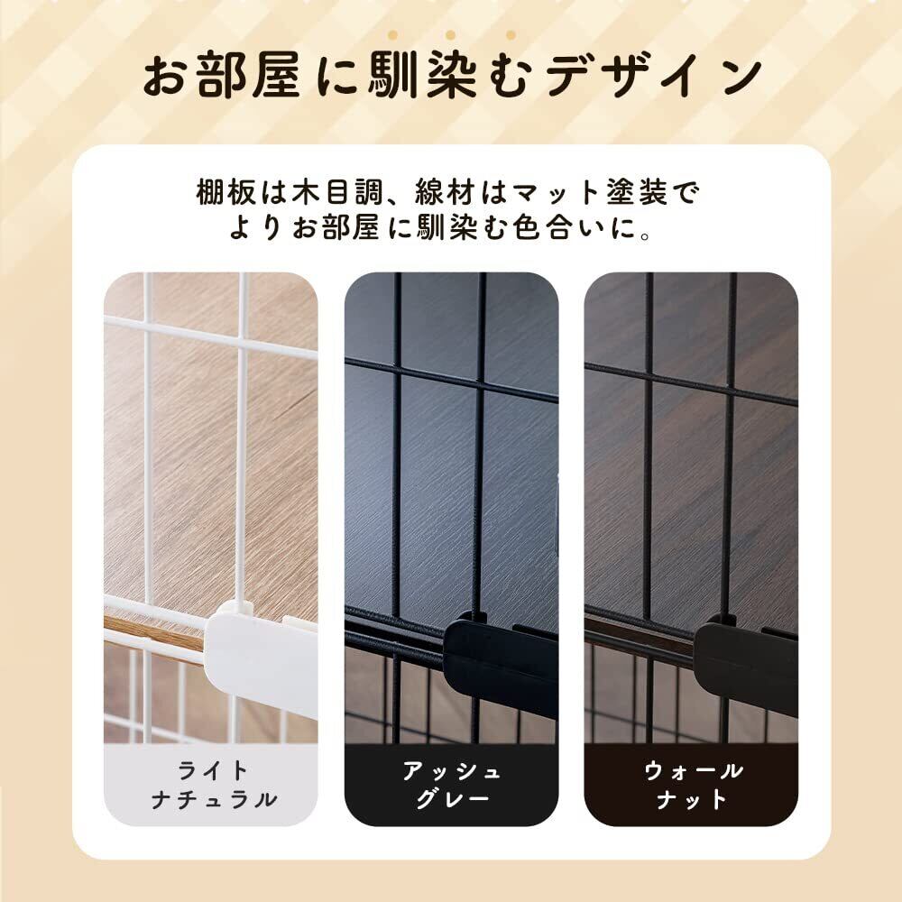 棚板は木目調、線材はマット塗装。お部屋に馴染むデザインです。