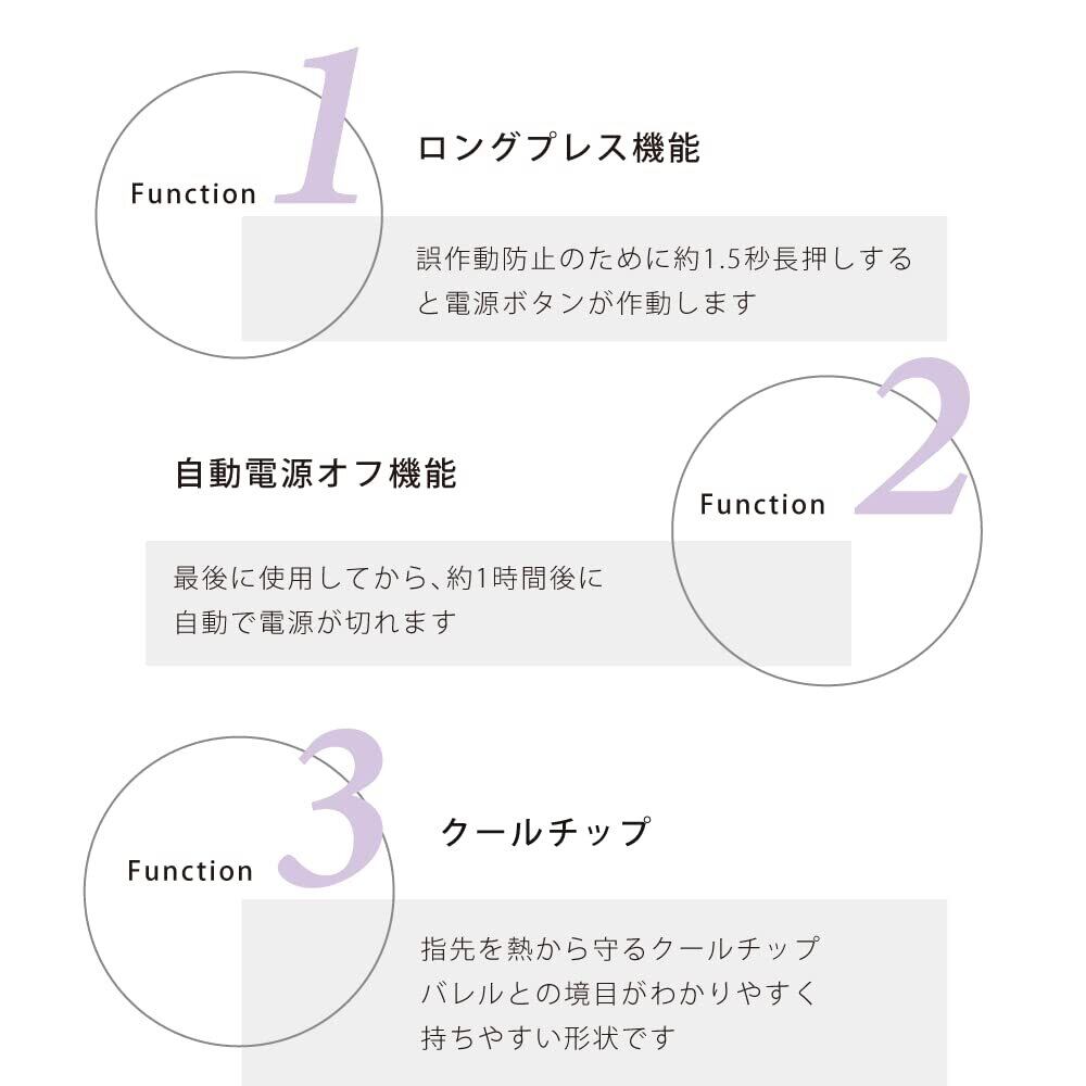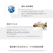 また、バレルの形状に沿った高品質ヒーターを採用していますので、中央部のみ高温になるアイロンと違い、バレルの先端・中央・根元で温度に差が出ず、バレルとクリップにも均等に熱が伝わるので、仕上がりにムラが出ません。