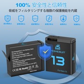【多重な保護機能搭載】Hero 13 バッテリーバッテリーは、過充電保護、過電圧保護、短絡保護、過放電保護、過熱保護の複数な機能搭載されて、Hero 13 アクセサリーからカメラを守ってくれます。