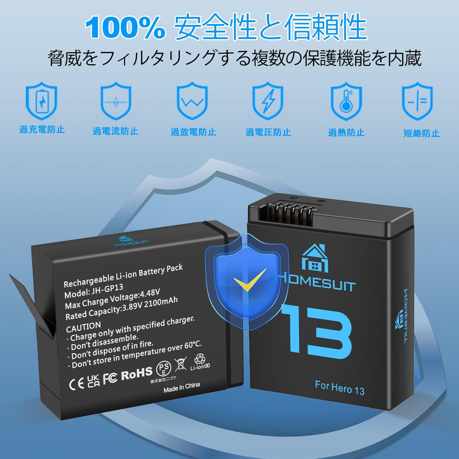 【特価商品】Homesuit Hero 13 Enduro バッテリー 充電器セット 2*2100mAh大容量電池 USB 収納式充電器 LED付きHero 13予備バッテリー チャージャー 2個同時充電可能 Hero 13 Black カメラに対応 | ニコニコSHOP