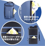 【多機能リュックサック】180°開閉:メインポケットはスーツケースのように約180°大きく開くことができるので、スムーズに出し入れます。反射テープ:反射テープ付きのため、夜間・暗がり・雨天時に車や歩行者からの視認性を大幅に向上させます。キーホルダー:フロントポッケトには着脱式キーホルダー付き、鍵を探す手間が省けます。