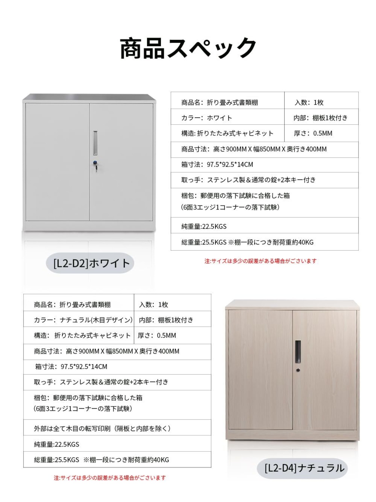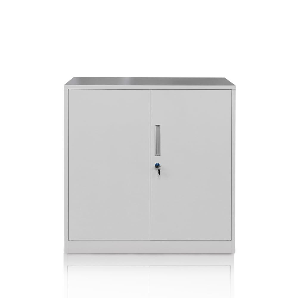 折りたたみ式キャビネット カウンター下収納 ラック カギ付き スチール書庫 両開き書庫 オフィス 学校 病院 自宅 法人 (ホワイト)